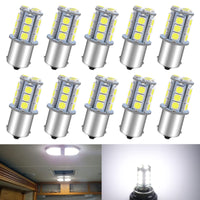 - The bulb is designed for RV, Modern design, the bulb is bright enough to save a lot of battery.? ? ADVANTAGE: these are rated as half of the wattage as many of the incandescent bulbs, so less heat in the trailer or RV, Not as hot as incandescent, Reasonable price, Good quality, The product is very popular in the market and has the support and love of customers. ?SEPCIFICATIONS: Base Type: 1156 1141 1003 Luminous Flux: 200Lum Voltage: 12V DC Wattage: 1.3W/Bulb Size: 1.69'' * 0.59'' (43mm*15mm) Color: White 3000k LED Number: 5050-18SMD Beam Angle: 360 degree Lifespan: 60,000 hours ? RECOMMENDED REASON: If you're looking for mood lighting, this very warm colored LED replacement is a good choice, It Can be installed in multiple places in your RV, such as: kitchen, room, bathrooms areas...ect. Brighten up your yard or RV for added safety and assurance; Keep your RV or camper well lit on dark nights while reducing power demand ? PACKAGE INCLUDE: 10-Pack 1156 White LED Light