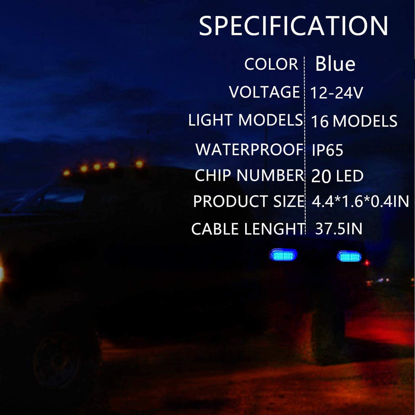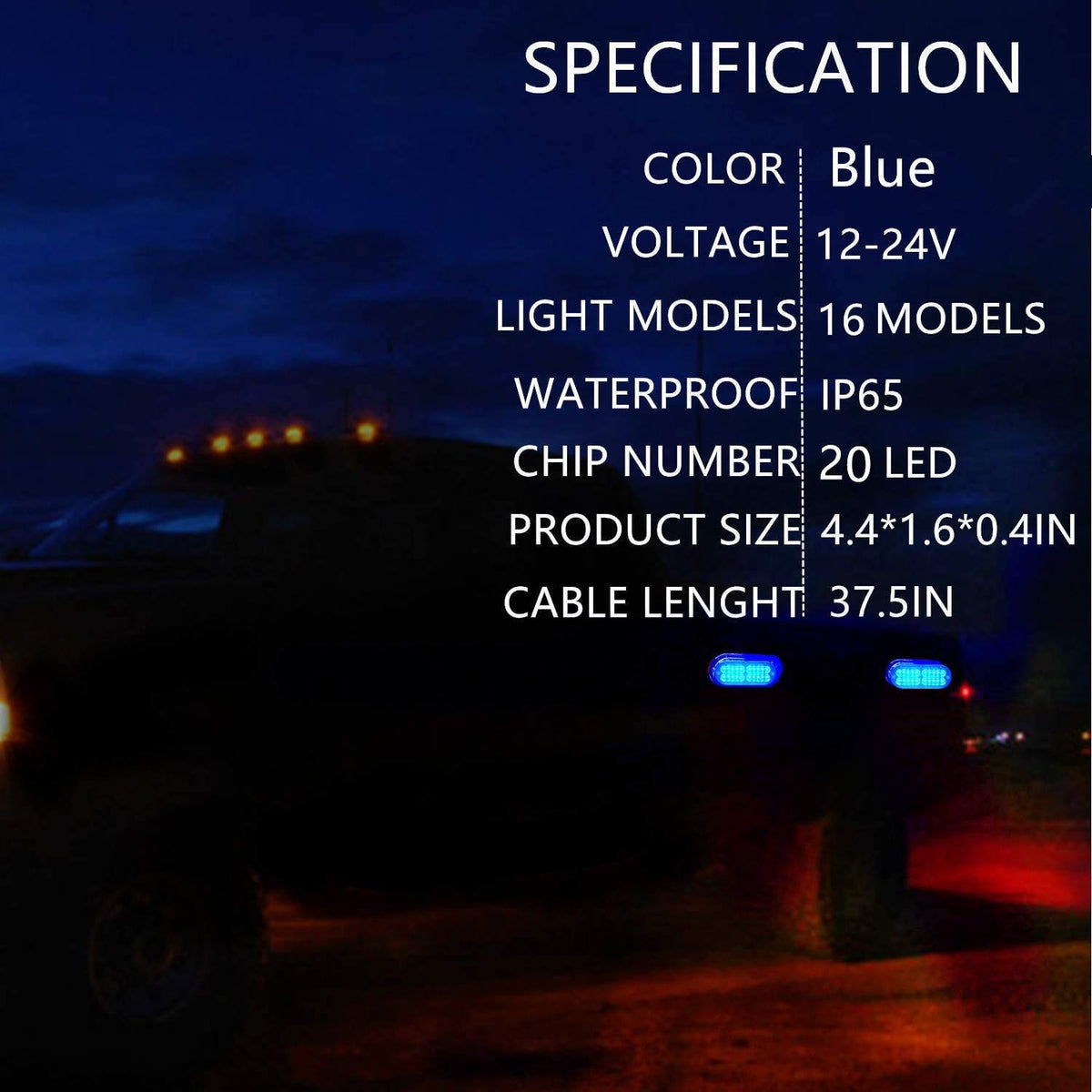 12-24V 20-Led Super Bright Emergency Warning Caution Hazard Construction Waterproof Amber Strobe Light Bar With 13 Different Flashing For Car Truck Suv Van - 4Pcs