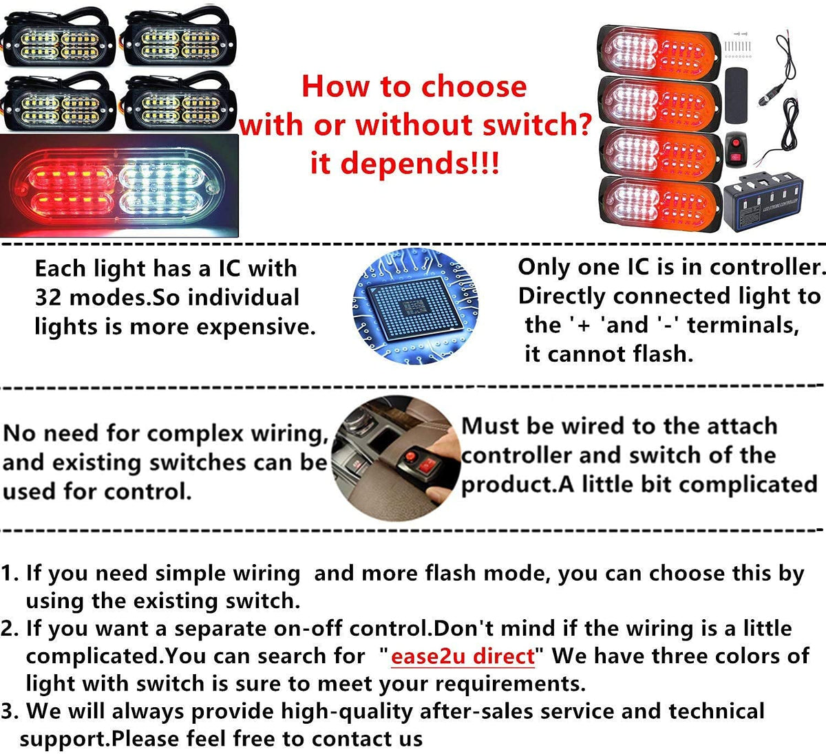 Q: What is the warranty and return policy for the emergency strobe light bar?A: The emergency strobe light bar comes with a 180-day warranty, allowing for returns within 7 days if you are not satisfied. If the product is defective, you can contact customer service for assistance.