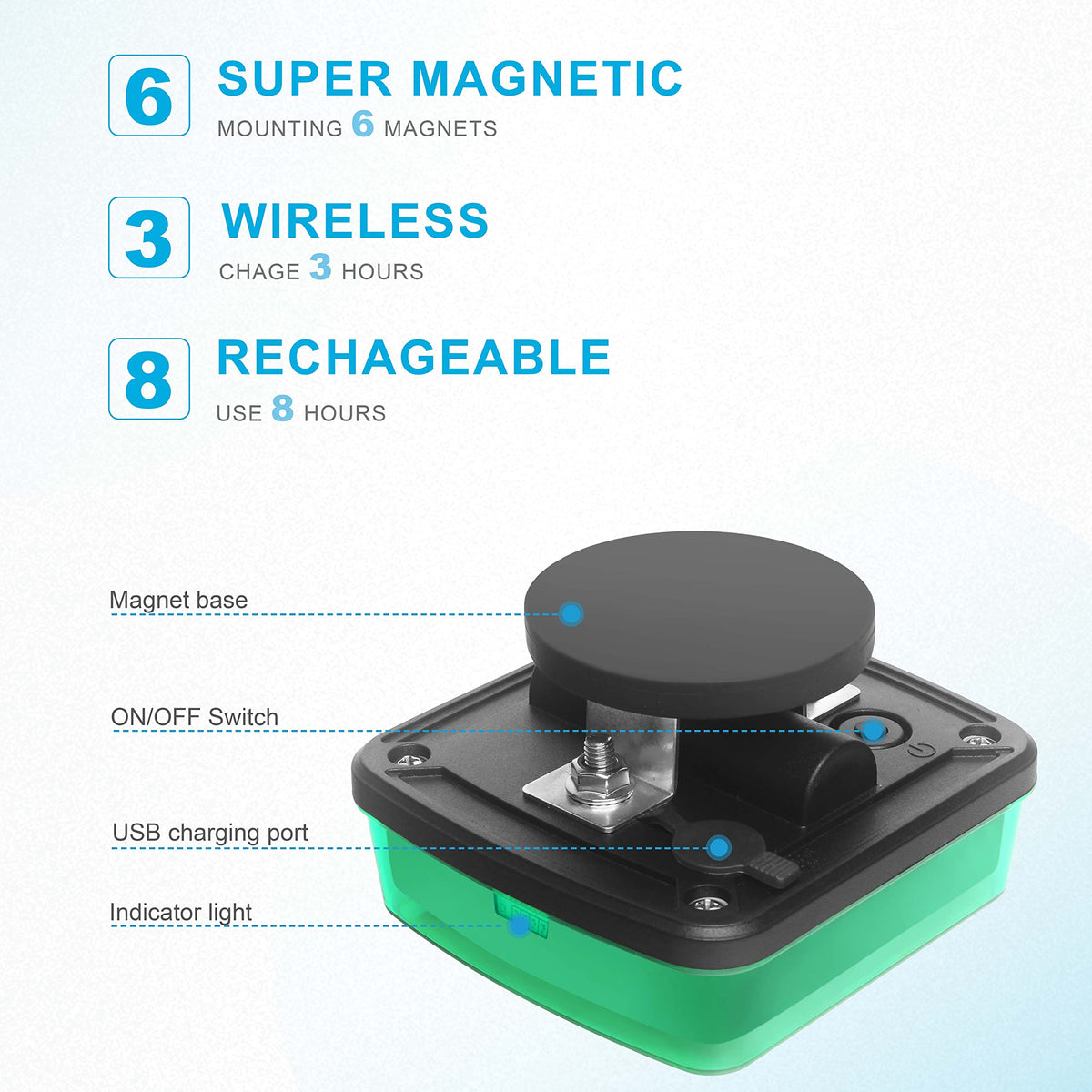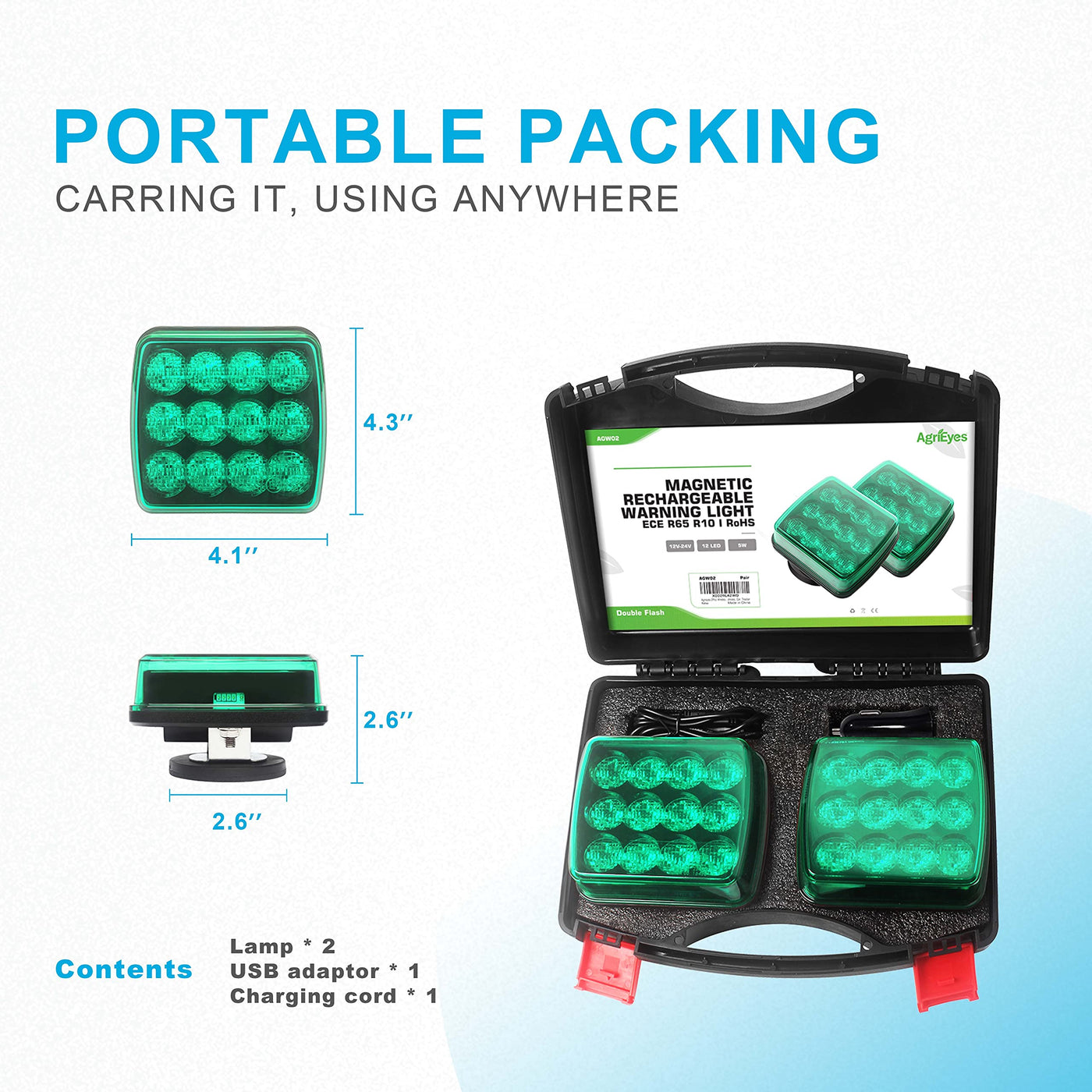 Agrieyes 2Pcs Wireless Emergency Strobe Lights For Trucks,Vehicles, Rechargeable Led Beacon Lights With Super Magnetic, 12-24V, Plow Flashing Hazard Warning Light For Tractor,Automotive, Boat (Green)