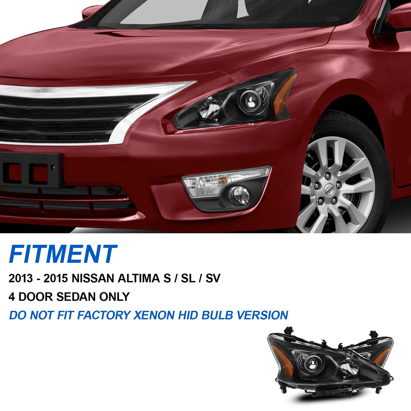 Q: What vehicles is the Alziria Headlight Assembly compatible with?A: The Alziria Headlight Assembly is specifically designed for the 2013, 2014, and 2015 Nissan Altima models, including the S, SL, and SV trims. It is only compatible with 4-door configurations.