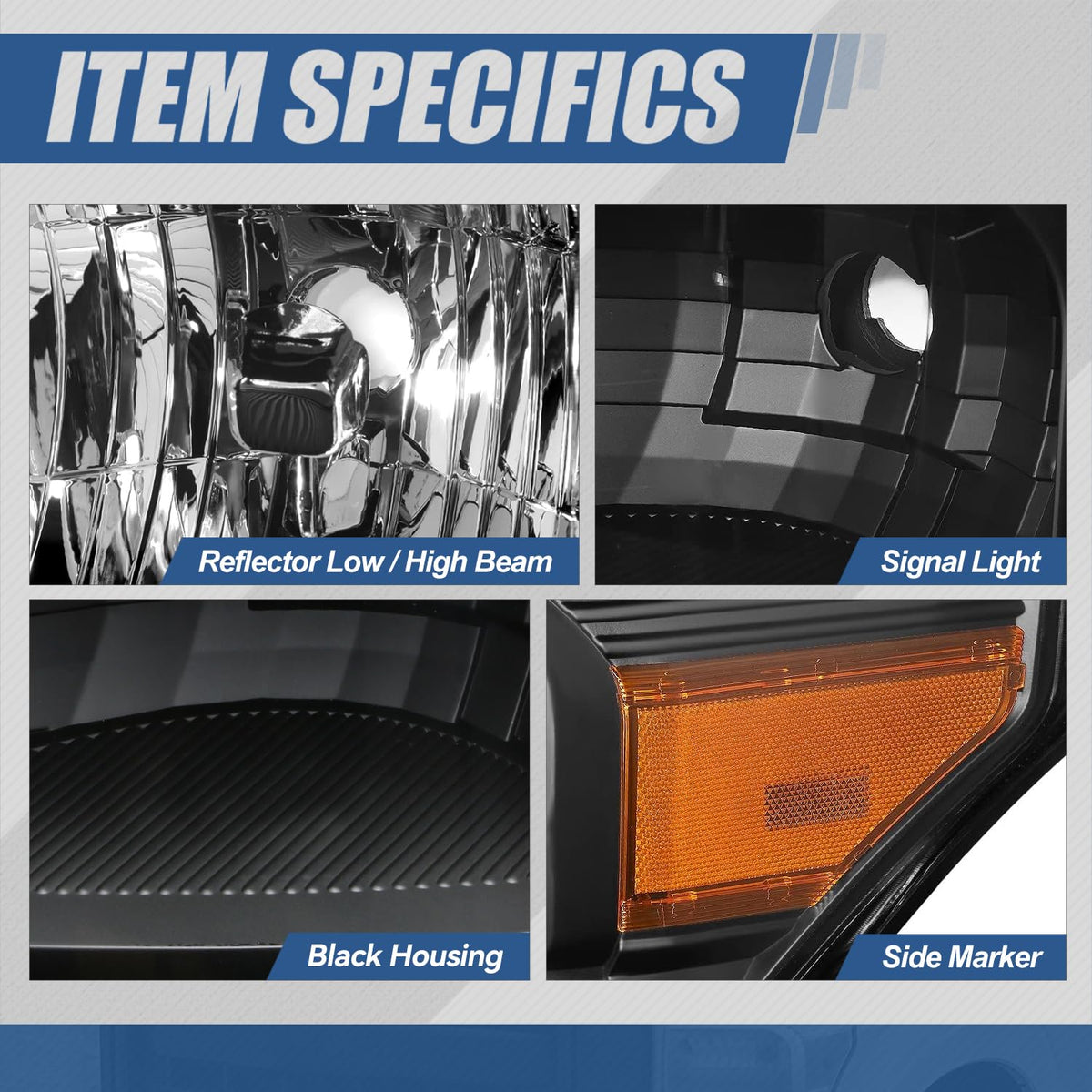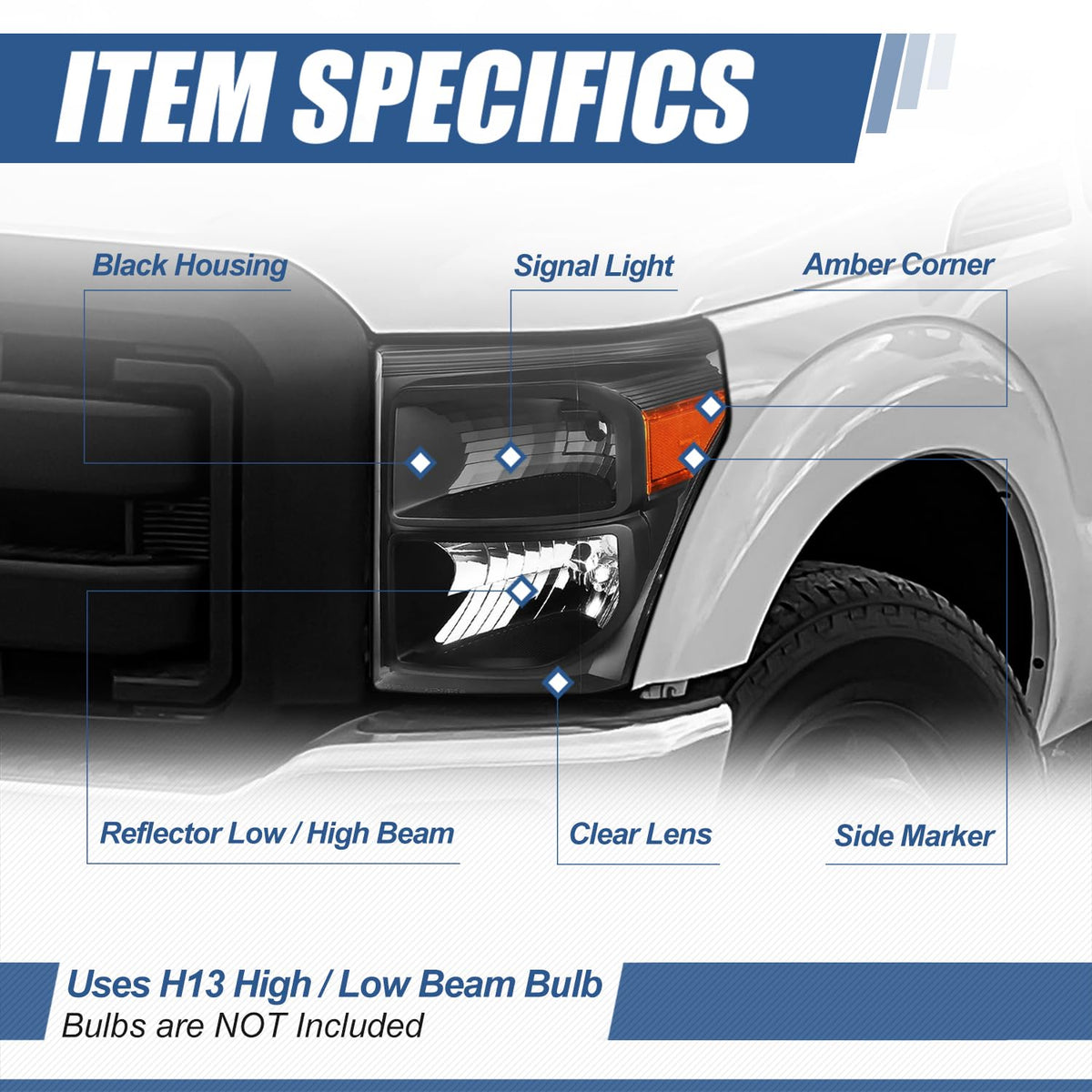 Auto Dynasty [Halogen Model Factory Style Headlights Assembly Compatible With Ford F-250 F-350 F-450 F-550 Super Duty 11-16, Bla