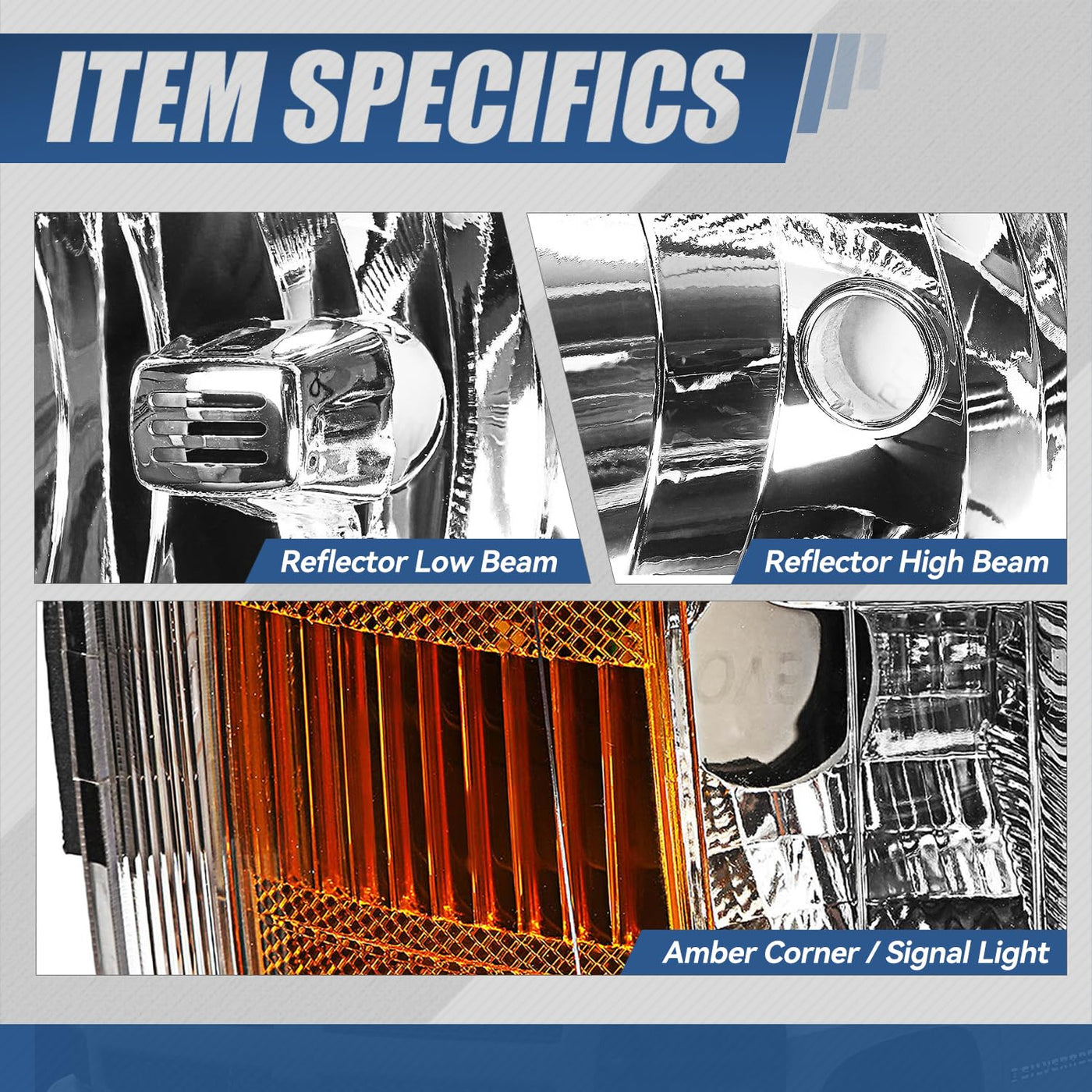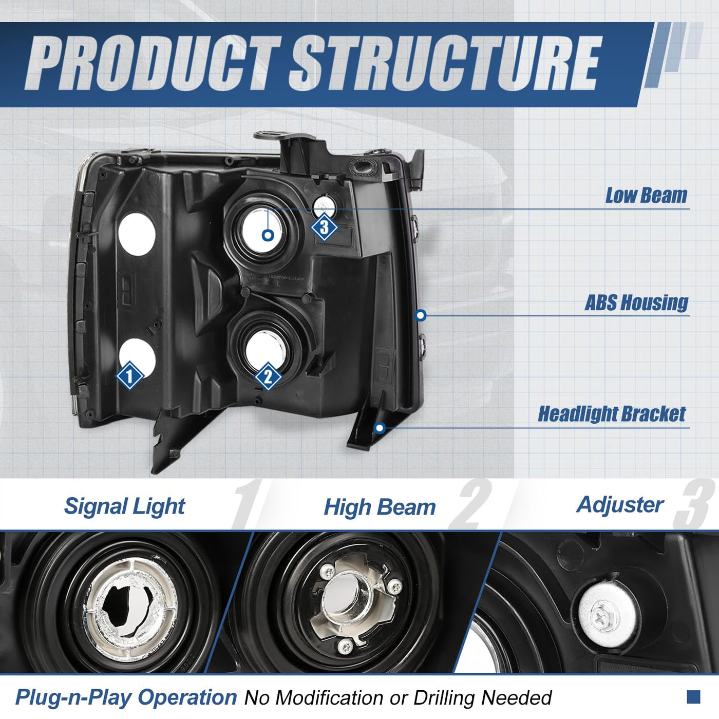Auto Dynasty Headlights Assembly Compatible With 2007-2014 Chevy Silverado 1500, Driver And Passenger Side Halogen Headlamps Rep