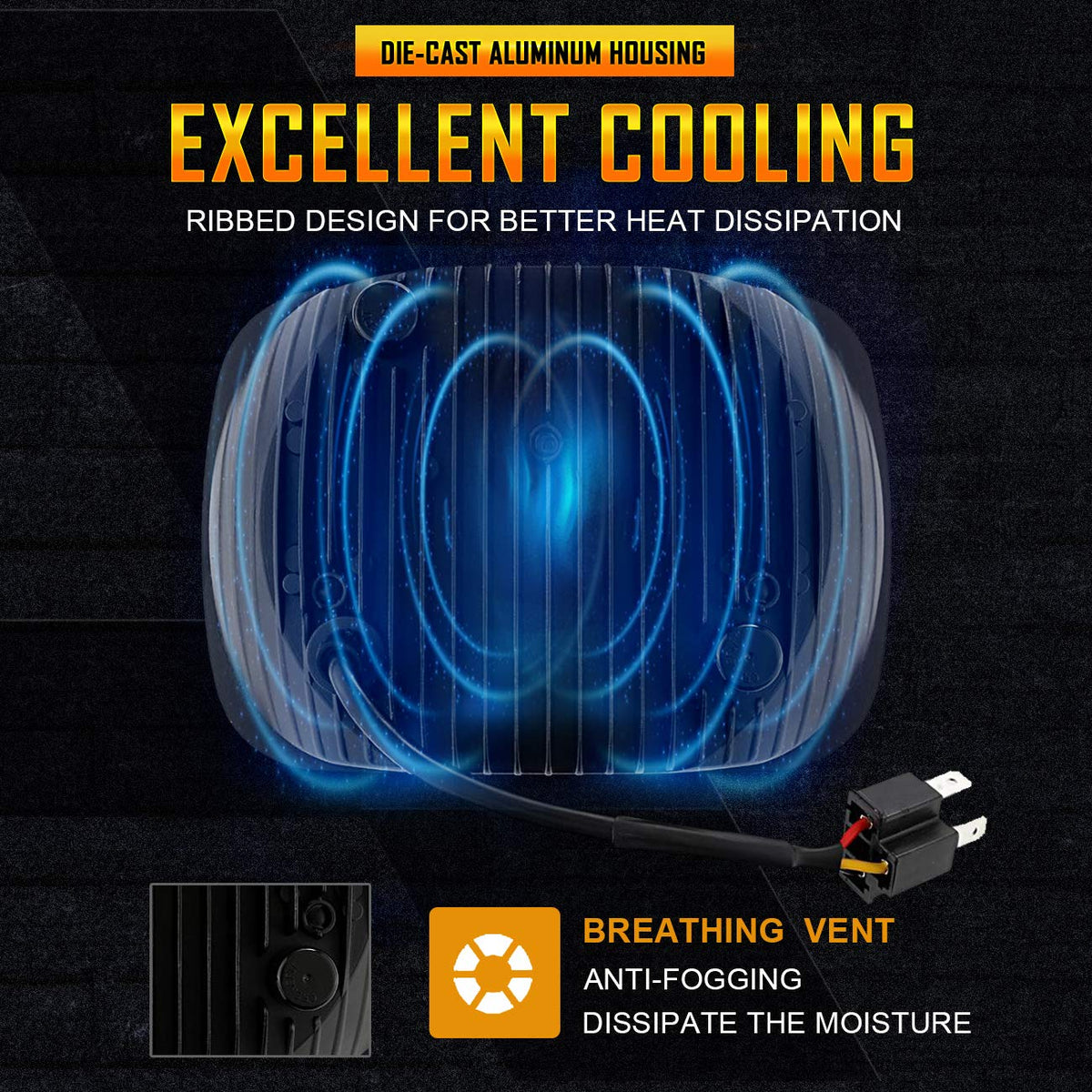 Technical Specification:Color Temperature: 6000K pure white lightLumen: 8000lms on high beam, 5600lms on low beamPower: 110WWaterproof Grade: IP67Voltage: 12V DCHousing: Alluminum AlloyLife Span: 50,000 hoursCompatibility: Truck, Offroad, 4WD, Tractor,ATV,Boat,UTEMeasurement:7.87''(Length)x5.63''(Width)x3.14''(Depth),will fit headlight with similar size Fitment: Fit but not limited:Jeep Models with 5x7 inches (also known as7x6) stock headlights.Jeep Cherokee XJ 1984 to 2001 Jeep Wrangler YJ 1987 to 1995Jeep Comanche MJ 1986 to 1992 Ford Models with 5x7 (also known as 7x6) stock headlightChevrolet Models with 5x7 (also known as 7x6) stock headlightsChevrolet Express 3500, Chevrolet Express 1500, Chevrolet Astro GMC Models with 5''x7''(7''x6'') Package Included:2 x 110w 5x7inch LED Headlights + 2 x H4 Adapters