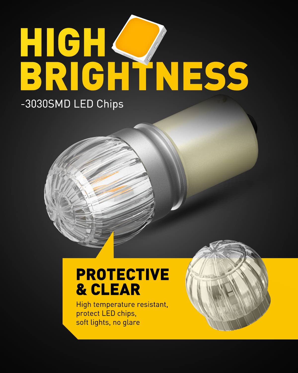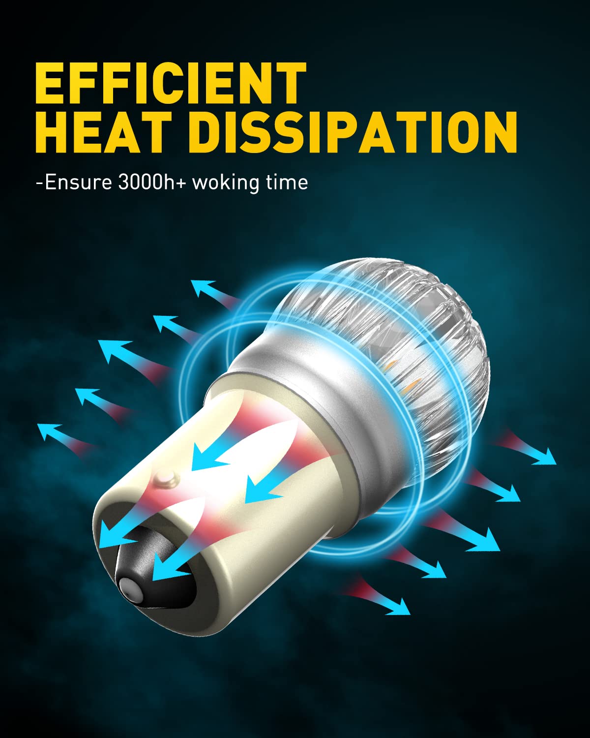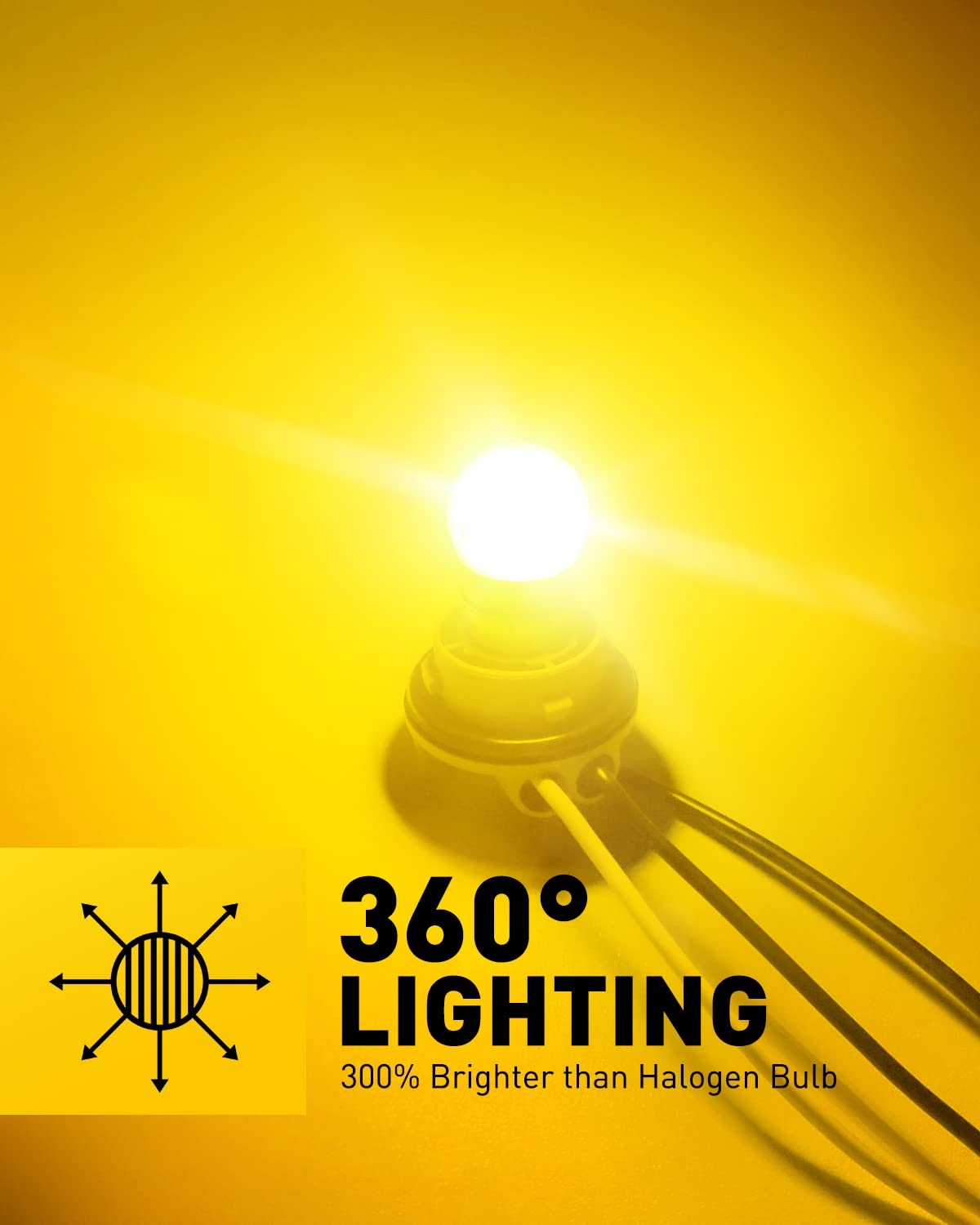 Q: How bright are the AUXITO 1156 LED Bulbs compared to halogen bulbs?A: These LED bulbs provide 360° illumination and generate 300% brighter output than traditional halogen bulbs, enhancing safety when used as turn signals.