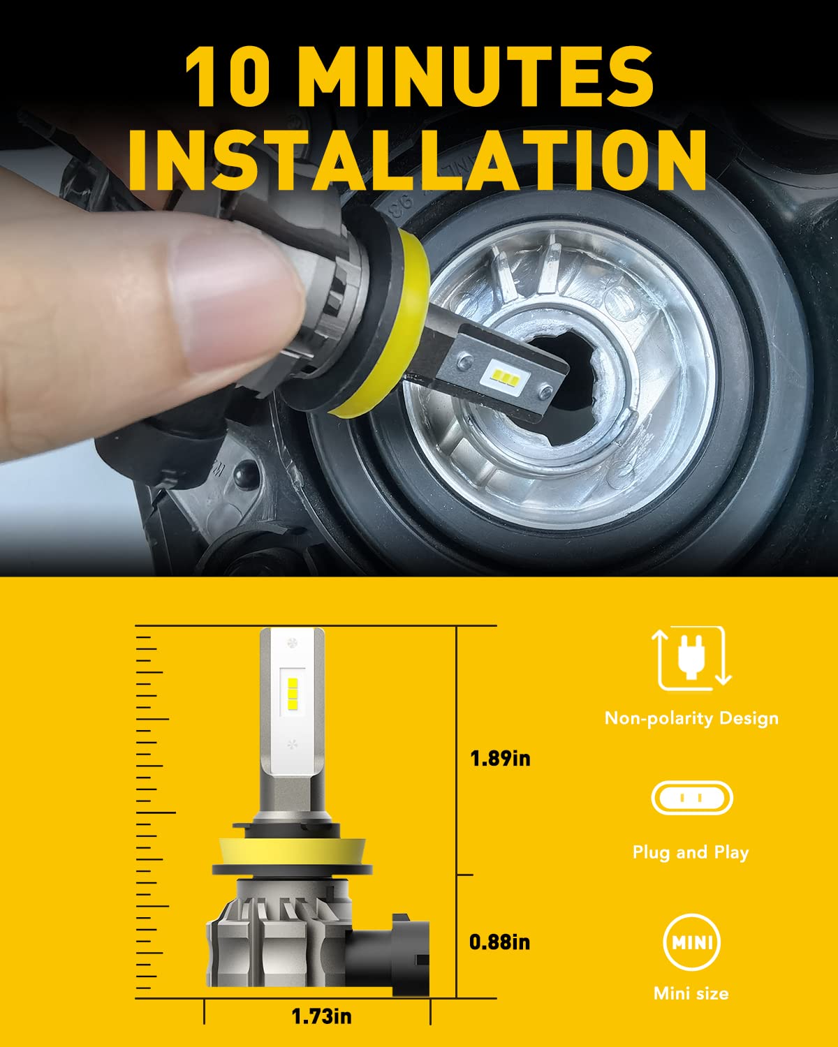 Q: Are these fog light bulbs compatible with my vehicle?A: These LED fog light bulbs are specifically designed to fit H11, H8, and H16 sockets, making them compatible with a wide range of vehicles. Always check your vehicle's specifications or owner's manual to ensure proper fitment.