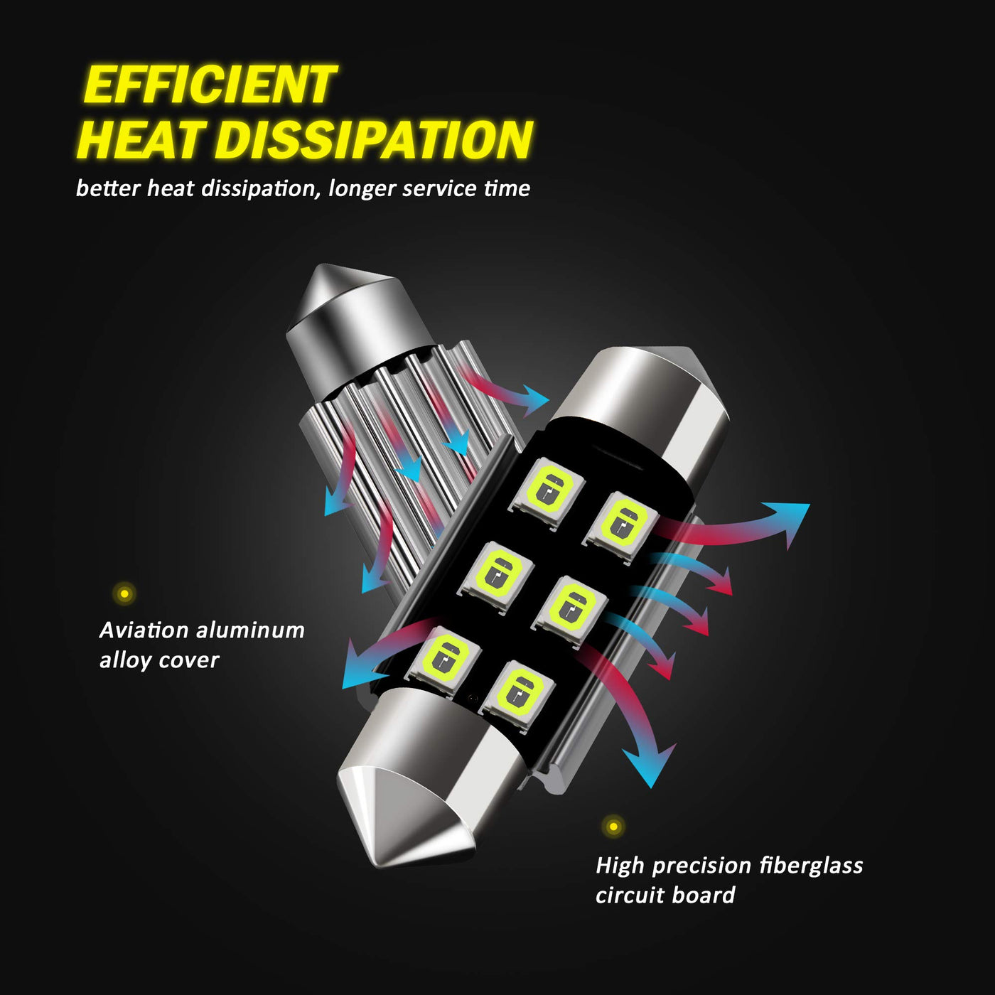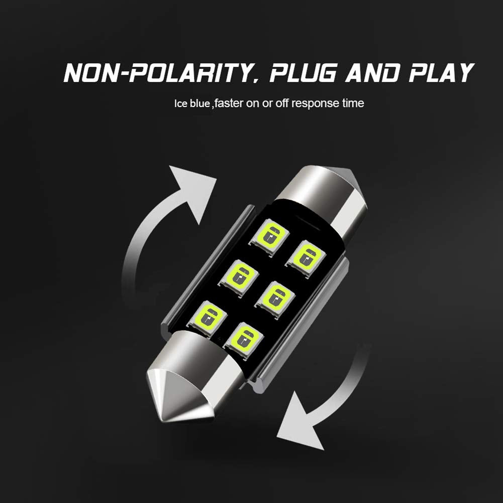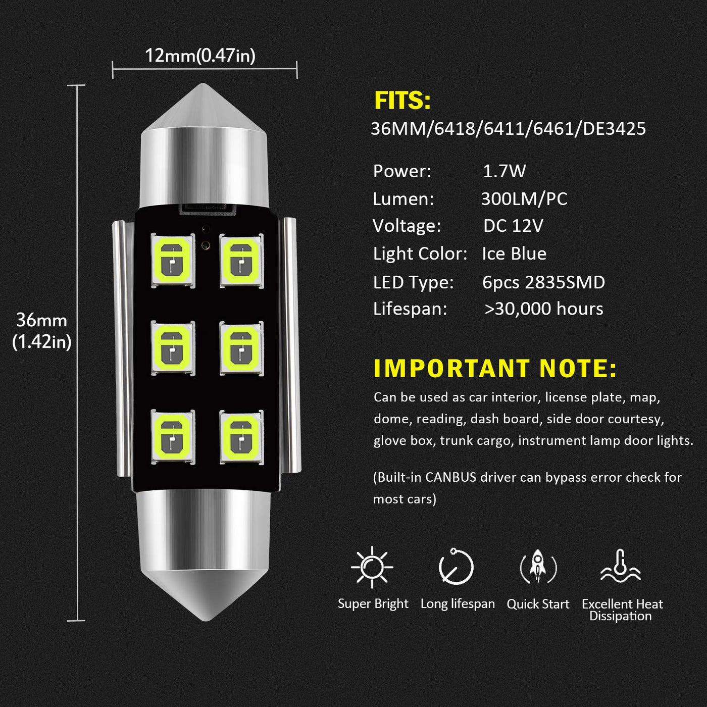 Auxlight 6418 6411 De3425 C5W De3423 36Mm 1.42”Festoon Canbus Error Free Led Interior Light Bulbs Ice Blue, Super Bright 6Smd Chips For Dome Map Door Courtesy License Plate Lights (Pack Of 6)