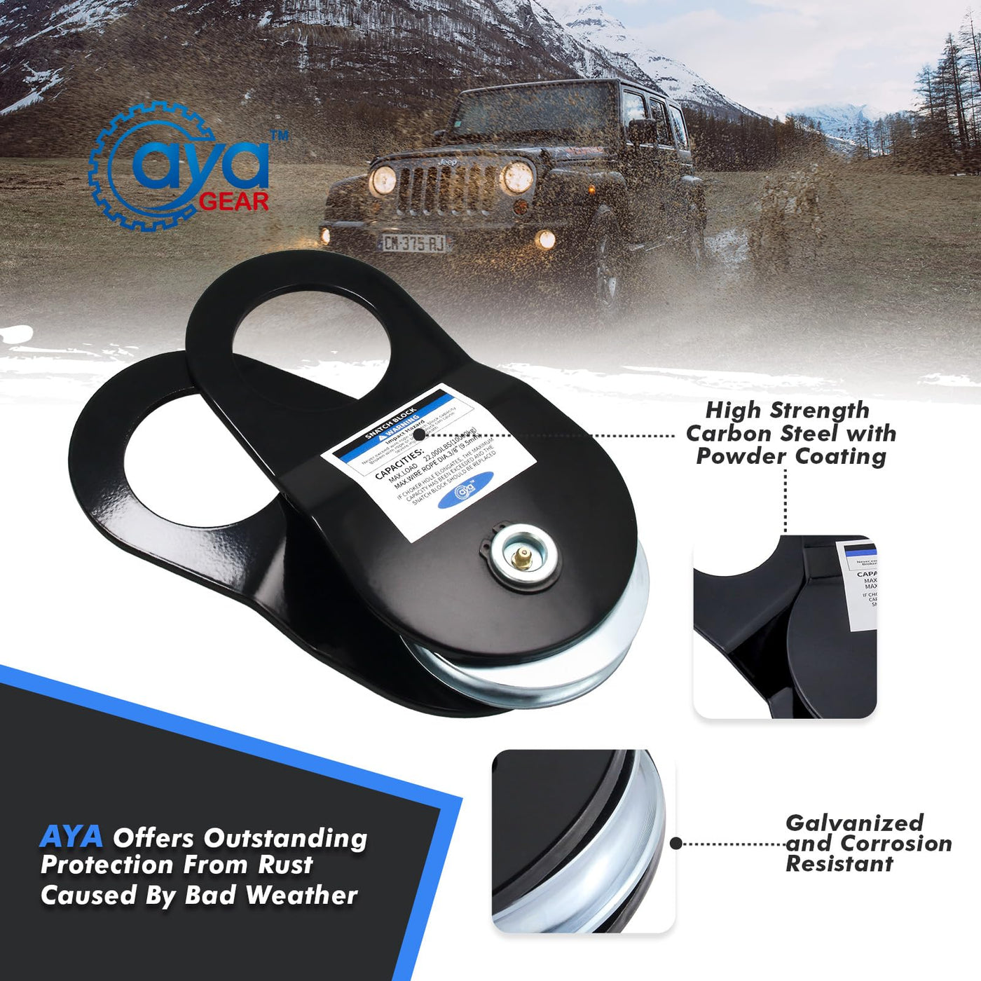 Aya Gear 10 Ton Winch Snatch Block Towing Pulley Blocks 22,000 Lbs Capacity, Offroad Recovery Accessory For Truck, Tractor, Atv