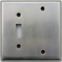 This plate is made from stamped steel that is nickel plated then finished to beautiful satin/brushed nickel finish with. This plate differs slighted from our forged satin nickel finish, first by material used in its construction (nickel plated stamped steel versus nickel plated forged brass), thickness (it is thinner than our forged brass counterpart). This two gang wall plate will accommodate one standard toggle light switches and one blank gang.