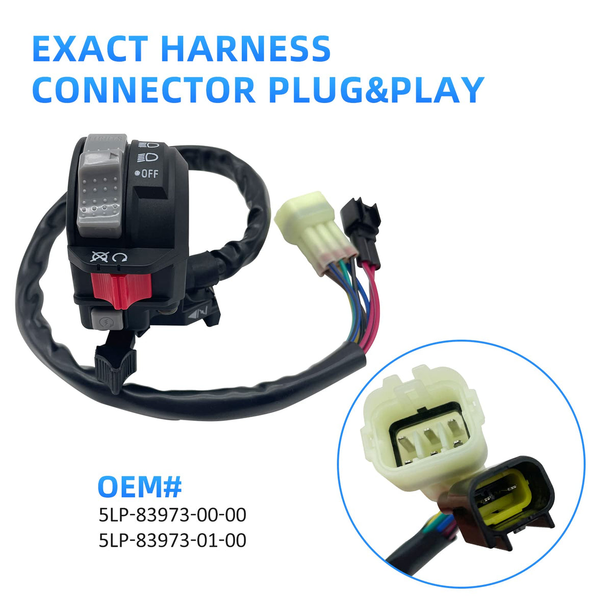 Q: What functions does the Control Switch Button provide?A: The Control Switch Button offers multiple functions, including engine start, engine stop, headlight high/low/off, and a choke lever, making it a versatile component for your Yamaha ATV.