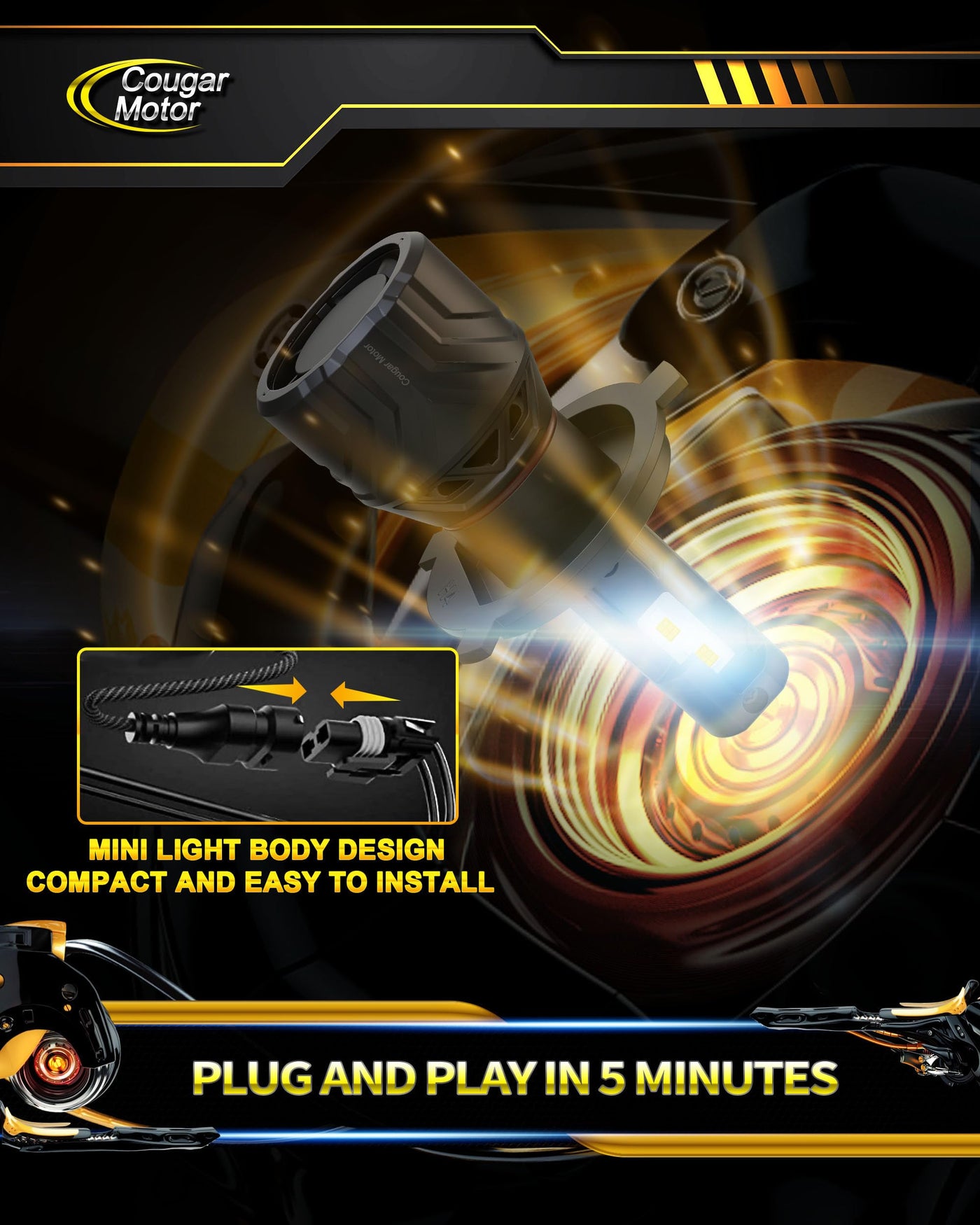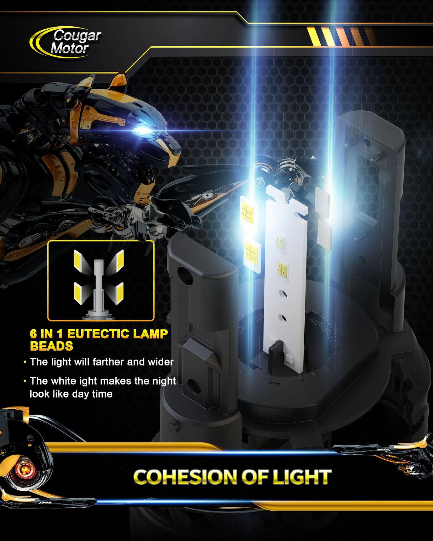 Cougar Motor H4 Bulbs, 9003 Fog Lights 6500K White Non-Polarity H4 Fog Bulb Or Off-Road Use Plug And Play - Pack Of 2