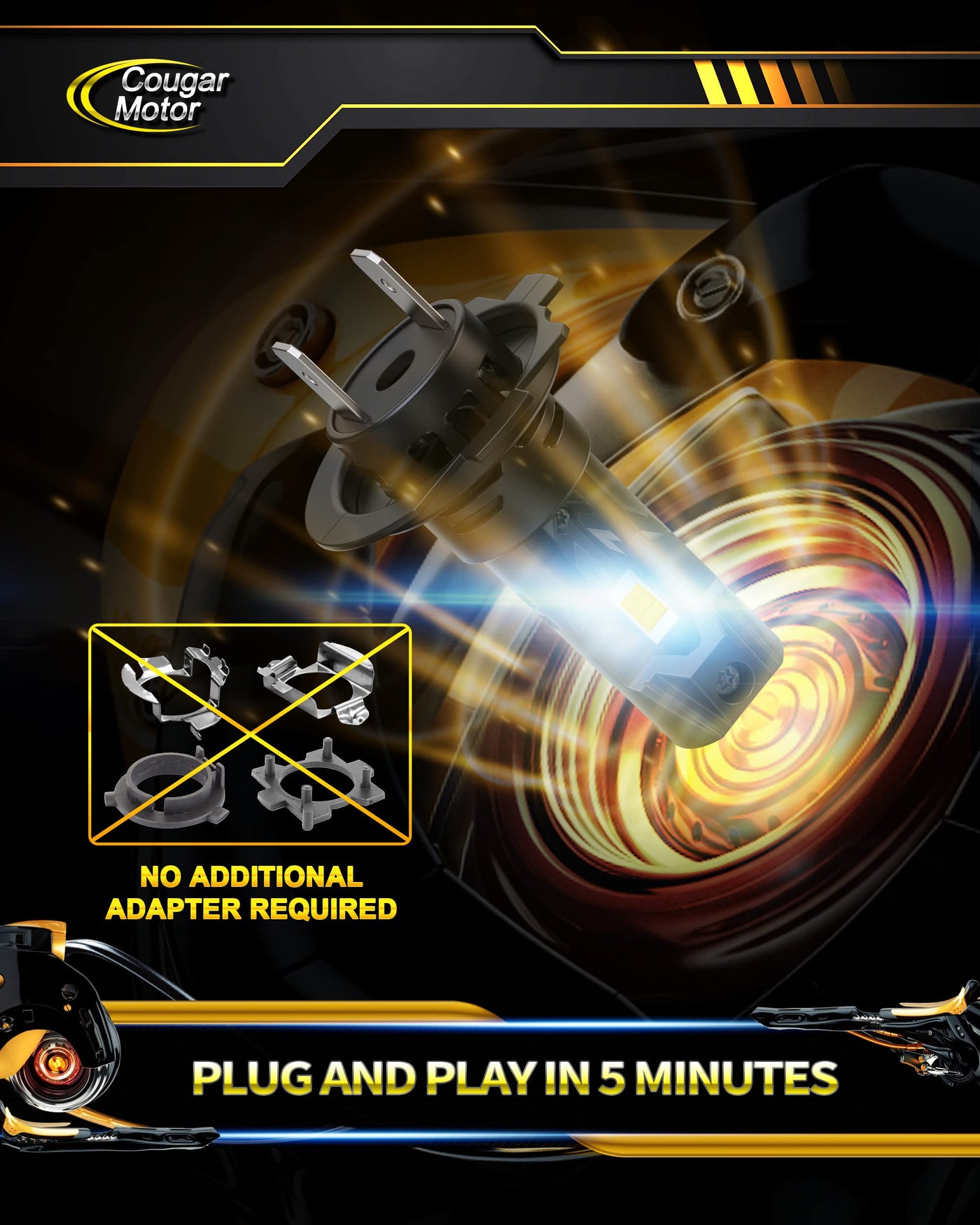 Cougar Motor H7 Bulbs, 1:1 Size H7 Lights Bulb No Adapter Required 6500K White Fog Light Or Off-Road Use Plug And Play - Pack Of