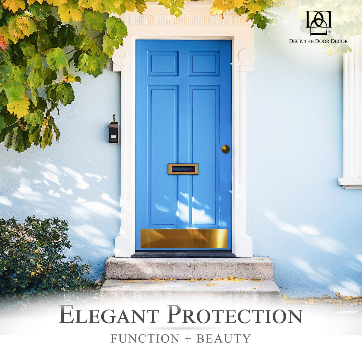 Q: What benefits does this kick plate offer for my door?A: The Deck The Door kick plate provides robust protection against wear and tear, shielding the lower part of your door from damage. Additionally, it enhances the aesthetic appeal of your entryway, adding a touch of elegance while safeguarding your investment.