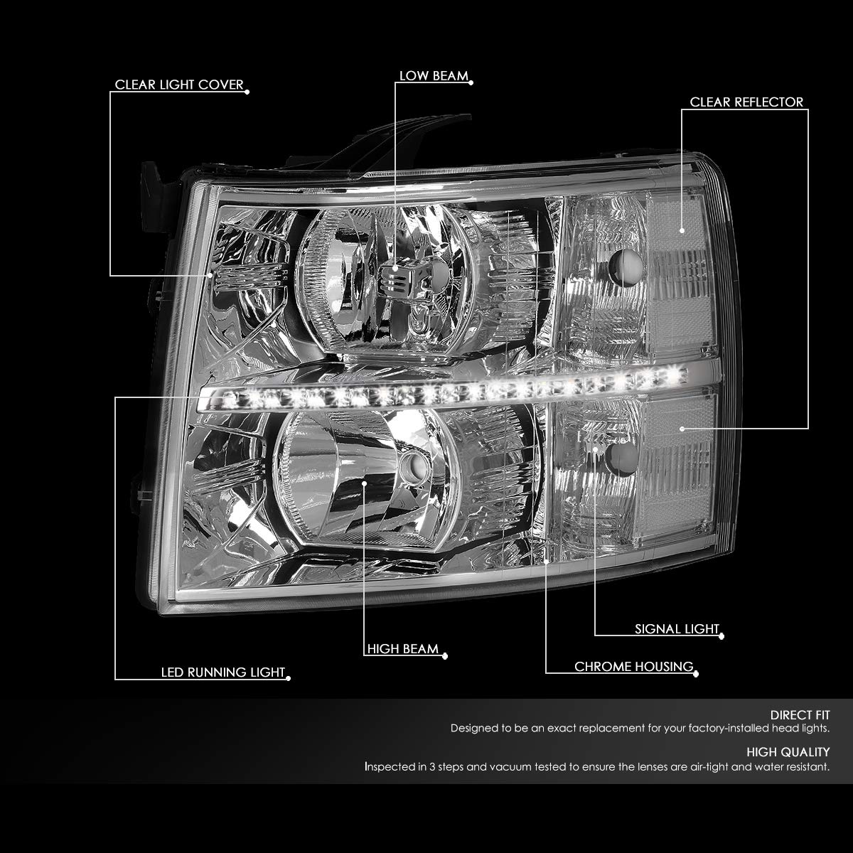 Dna Motoring Pair Led Drl Headlights Compatible With 07-13 Chevy Silverado 1500 07-14 Silverado 2500 3500 Hd, Chrome/Clear, Hl-L