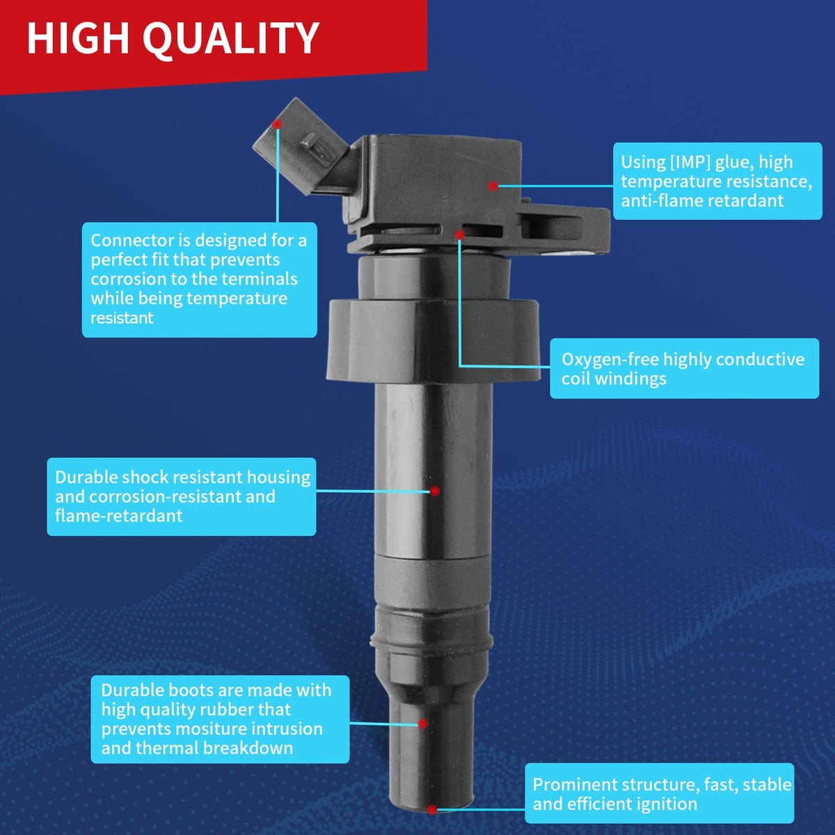 ALL ITEMS ARE BRAND NEW Package Including: 1 x New Ignition Coil Common Symptoms of a Faulty Coil Pack: A rough idle A noticeable lack of power An unexplainably louder-than-usual engine A significant drop in RPMs while accelerating for no apparent reason A blinking or intermittently activating check engine light An active gas warning light when the vehicle has plenty of gasoline Smoke from the exhaust emitting intermittently, instead of in a steady stream If your car has the above symptoms, it is highly recommended to replace the ignition coil in time for your driving safety. Why Choose Our Coils? 100% Factory tested Ready to use, Direct Replacement Built to strict quality control standards Use highest grade material with OE+ durability Durable and reliable under extreme conditions while Provide high Electrical, Corrosion, and Abrasion Resistance Part Numbers: 273012B100, C1803, 1788509, GN10634, 27301-2B100, COP554, 5C1860, 48943,UF652 , 6738304 Applications and Compatability Compatible for Dodge Vehicles 2012 Dodge Attitude 1.6L L4 2013 Dodge Attitude 1.6L L4 Compatible for Hyundai Vehicles 2012-2017 Hyundai Accent 1.6L L4 2012-2017 Hyundai Veloster 1.6L L4 2016 Hyundai Veloster 1.6L L4 Turbo Compatible for Kia Vehicles 2012-2018 Kia Rio 1.6L L4 2012-2016 Kia Soul 1.6L L4 About Us DrCax are automotive-related brand,supplying mainly high quality auto parts for all over the world.Experienced in OEM service and Tuning parts for years.