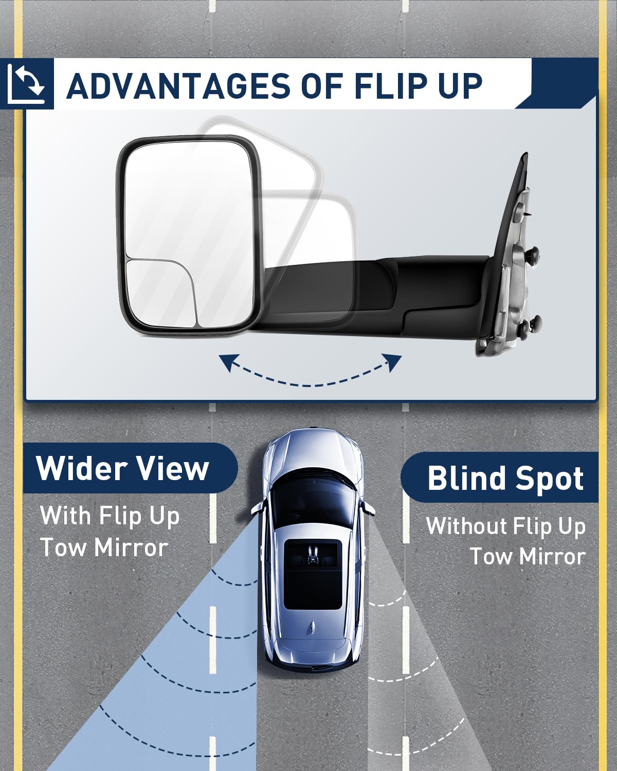 Eccpp Tow Mirrors Replacement Fit For 2003-2008 For Dodge For Ram 1500 2500 3500 Truck Towing Mirrors Power Heated No Light Manu