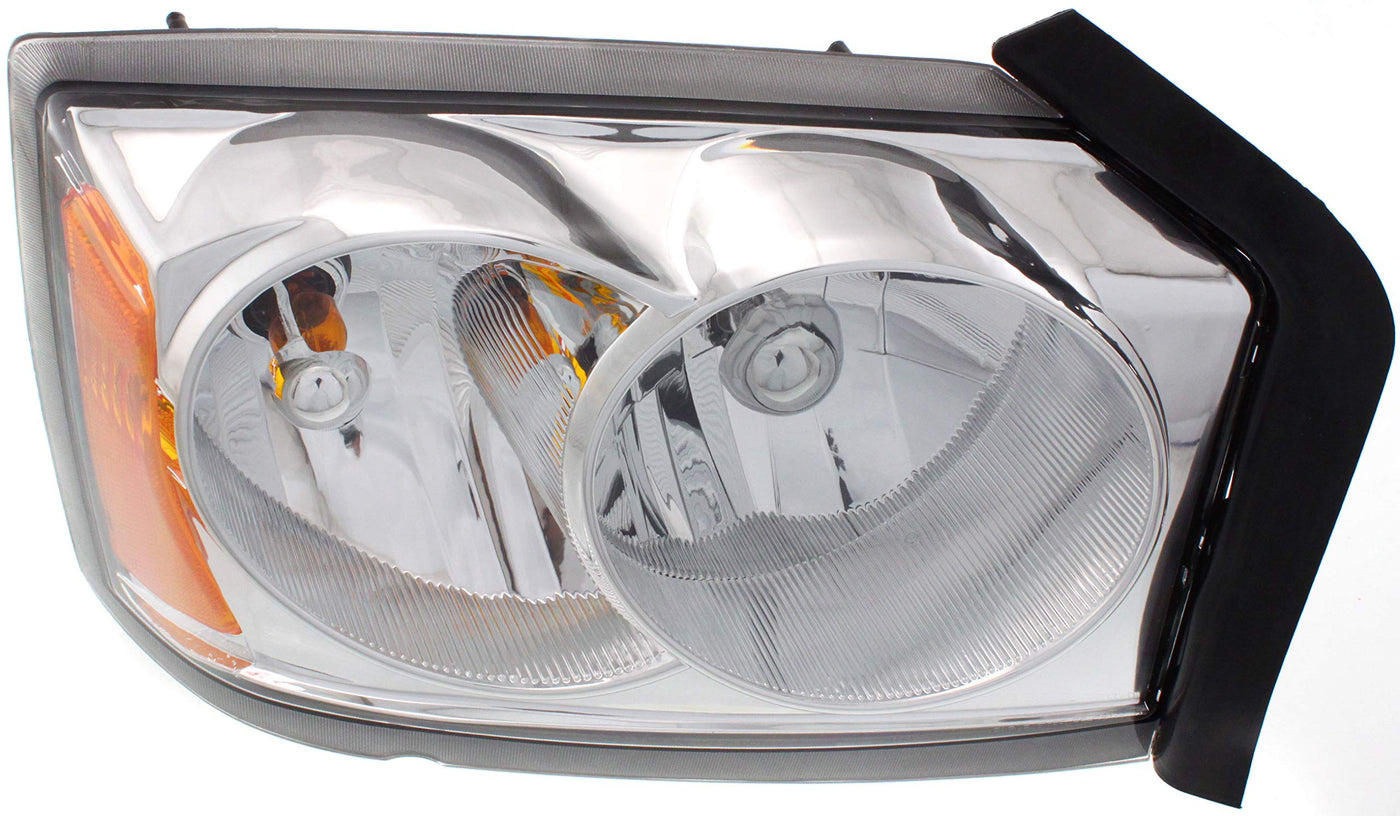 Evan-Fischer Headlight Assembly Compatible with 2005-2007 Dodge Dakota Halogen Chrome Interior with Corner Light Bulb Shield Passenger Side