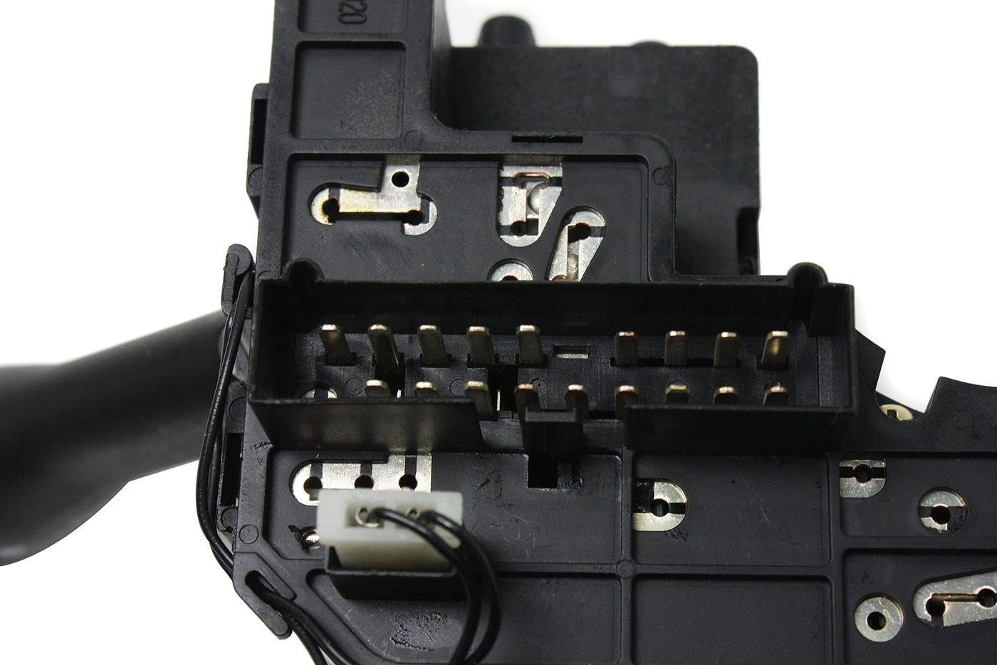 Q: What features does the Evan Fischer Turn Signal Switch offer?A: This turn signal switch features a blade type with an 18-prong terminal and male terminal. It controls the fog light, headlight dimmer, and turn signal/headlight functions, ensuring reliable performance.