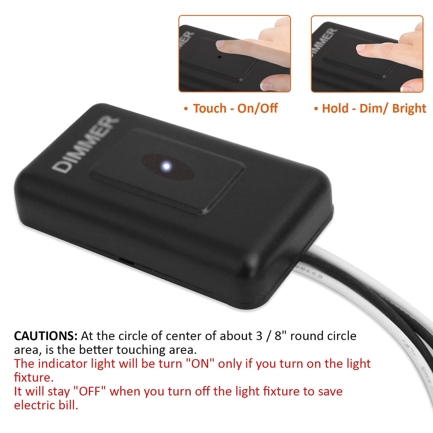 Facon 12Volt Touch Dimmer Switch, 50Watts Max, Use With 12V Led Lights, Incandescent And Halogen Bulbs For Rv, Camper, Marine, A