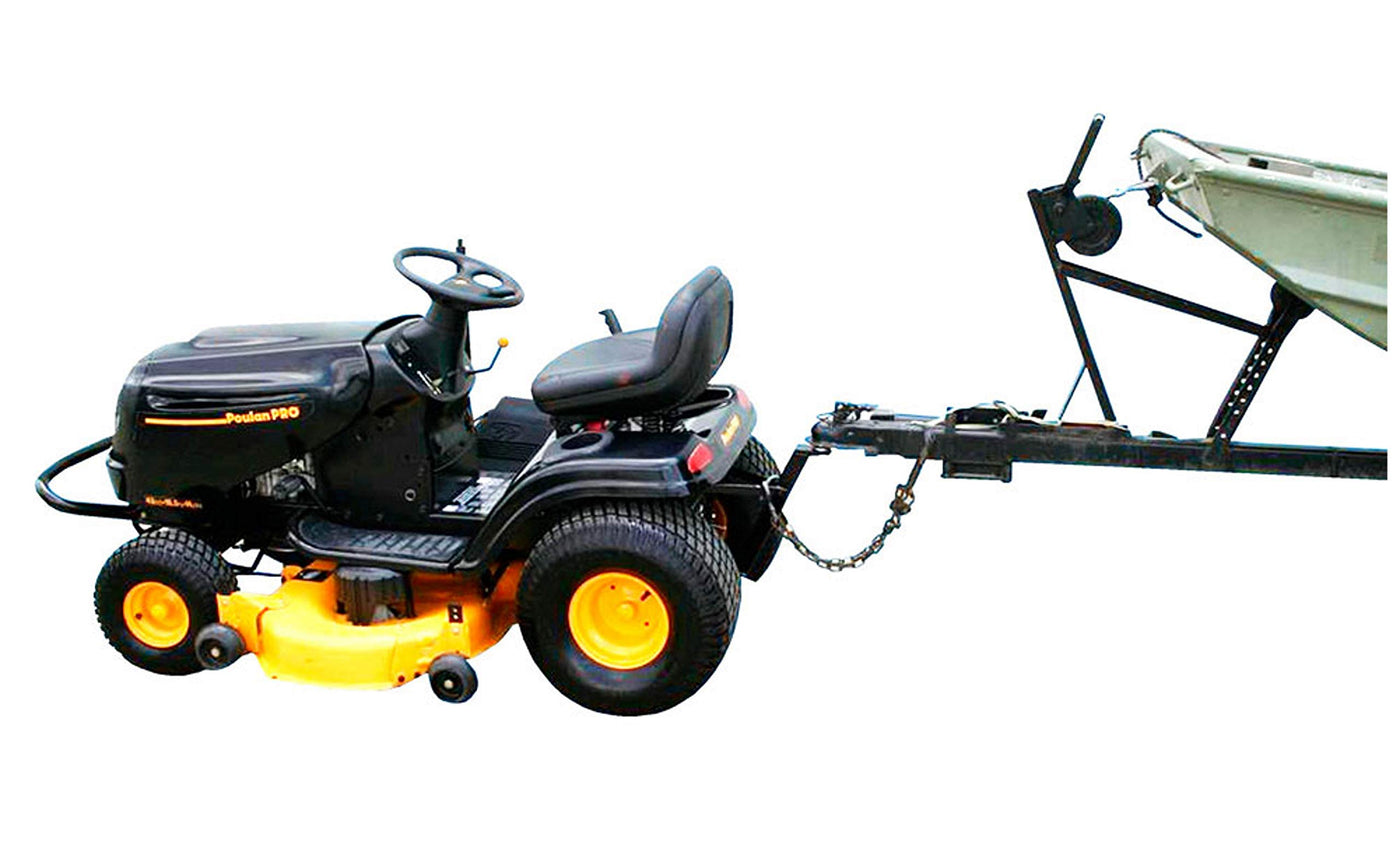 Q: What types of trailers can I pull with the Lawn-Pro Hi-Hitch?A: The Lawn-Pro Hi-Hitch is designed to pull small trailers, making it suitable for various tasks such as hauling trash on a utility trailer, transporting firewood, or maneuvering your ski boat into the garage.