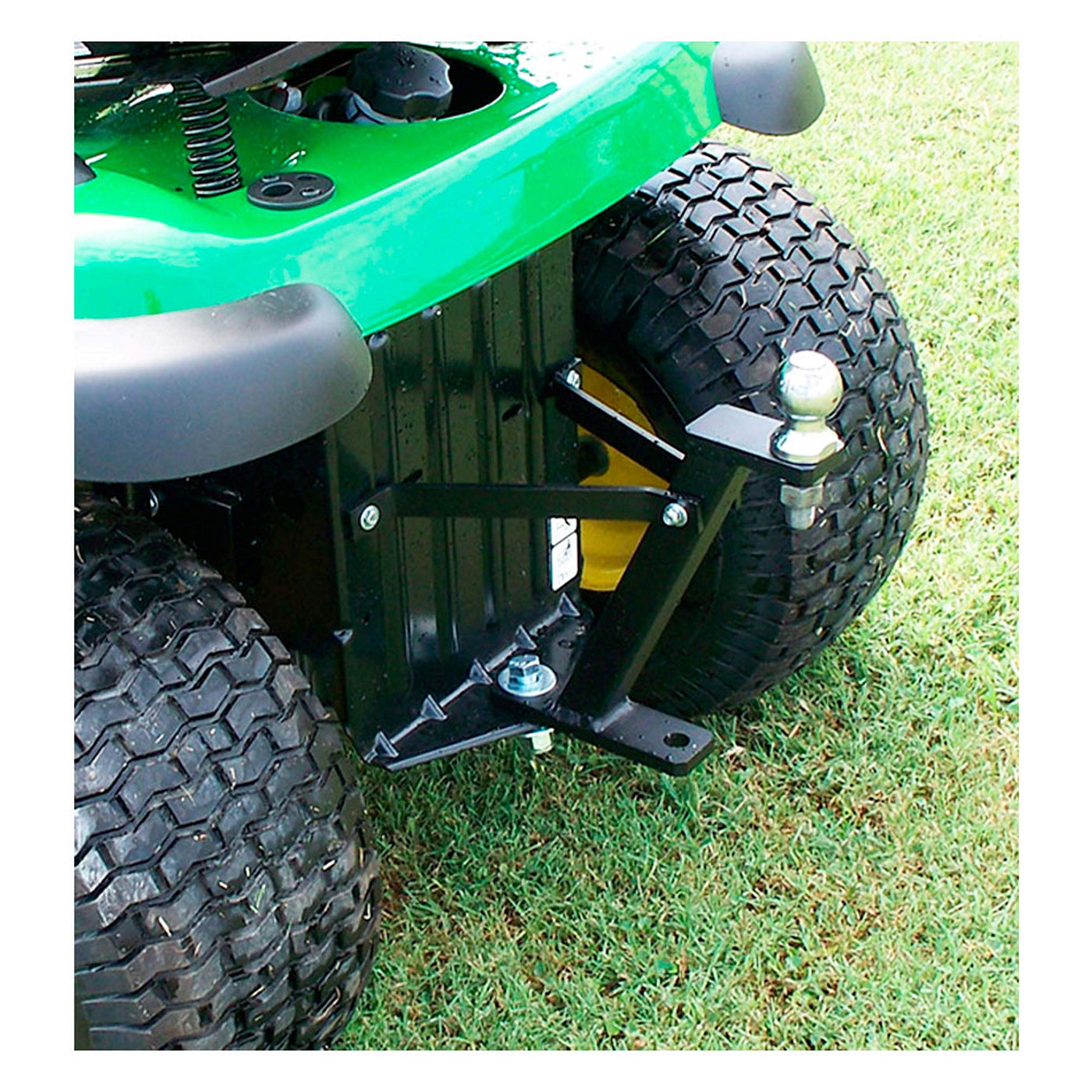 Riding Lawnmowers have the power and the low center of gravity to be natural towing machines.With the Lawn-Pro Hi-Hitch, a regular riding mower can be transformed into one of the handiest tools ever for pulling small trailers. Whether you’re hauling off trash on a utility trailer, bringing up firewood or just positioning your ski boat in your garage, the Hi-Hitch gets the job done The Hi-Hitch is braced and positioned perfectly at just the right height to keep trailers level and well-balanced. With super-strong aircraft aluminum construction, the Hi-Hitch provides a lot of “horsepower” with very little weight added to the machine. Installs easily and accepts all conventional trailer-hitch balls with 3/4 shank or smaller. The Hi-Hitch mounts to all conventional riding lawnmowers with a minimum of drilling or modifications. NOTE: Trailer hitch ball not included. Made with Pride in the USA