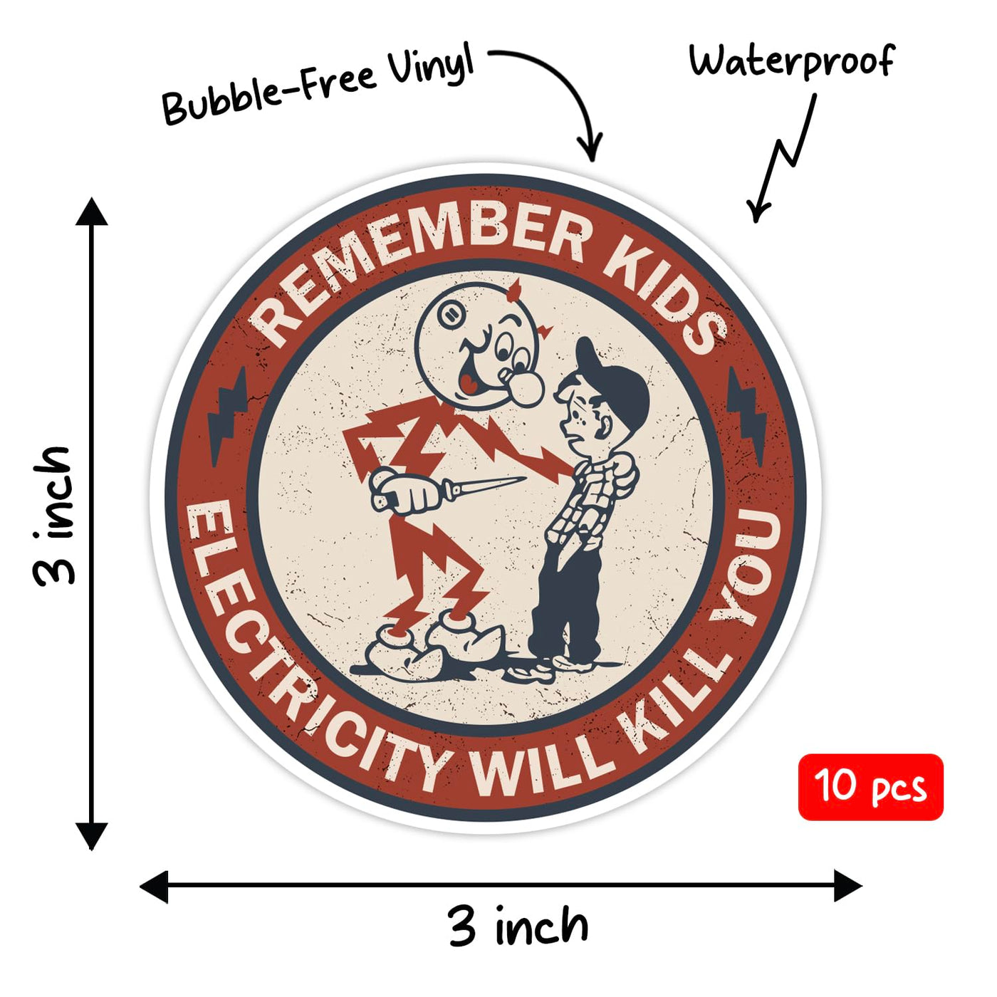 GRITKULTURE Remember Kids Electricity Will Kill You Decal Stickers 10 Pack 2.95 Inch Safety Warning for Hard Hat, Blue Collar, C