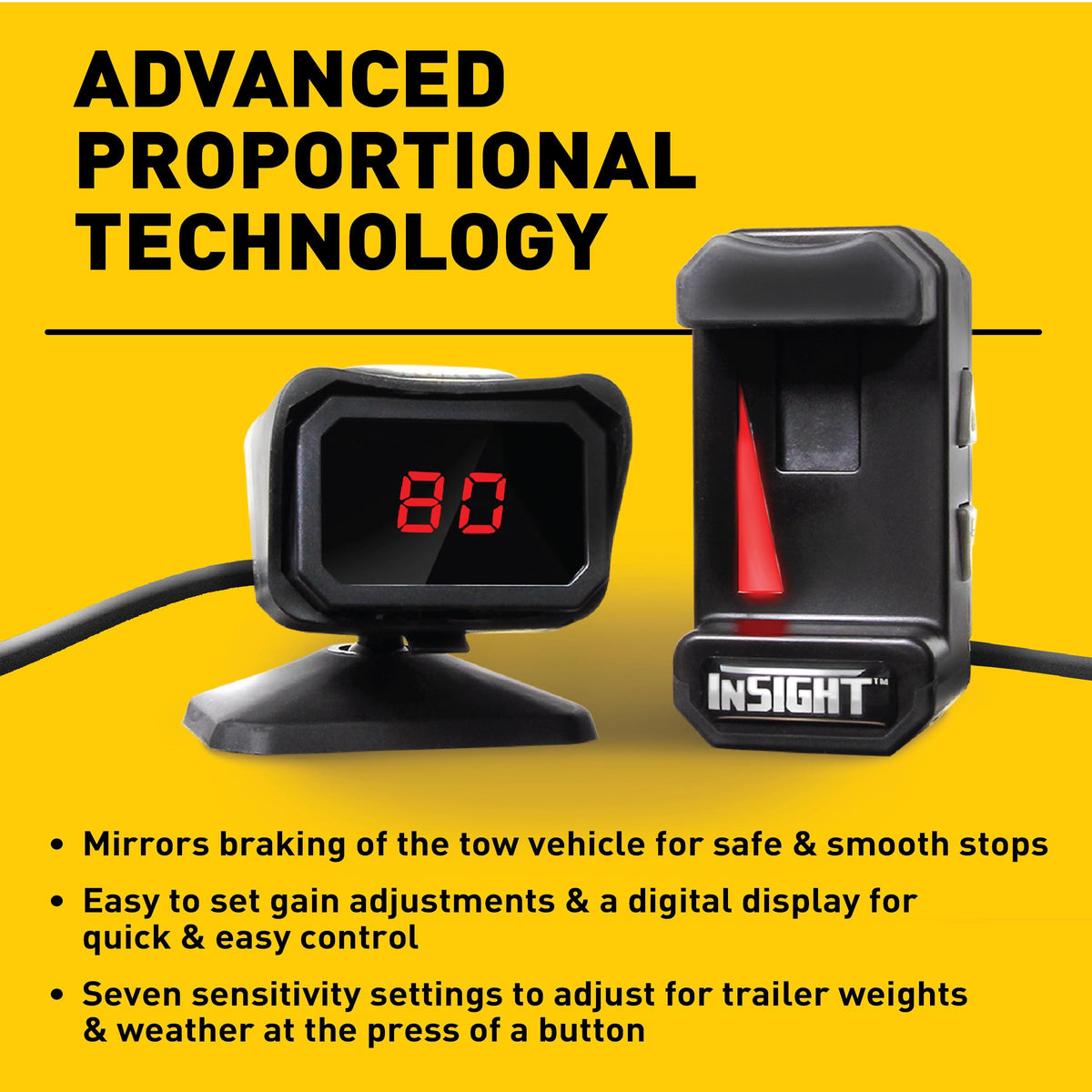 Hopkins Manufacturing Corporation makes your towing experience simpler and more rewarding through innovation and value. Hopkins offers a variety of towing solutions including vehicle wiring kits, adapters, vehicle and trailer connectors, breakaway systems, and much more. Today, more than 40 percentage of retail category sales are generated from Hopkins innovations. Hopkins INSIGHT brake control works on trailers with electric or hydraulic brakes. Features advanced proportional technology that mirrors the braking of the tow vehicle for safe, smooth stops, and short-proof protection for up to 8 trailer brakes. With multiple mounting locations in your vehicle, the separate components mount where you want them, with no drilling required. Allows you to keep your eyes on the road, with controls in easy reach. Includes digital power and sensitivity settings.