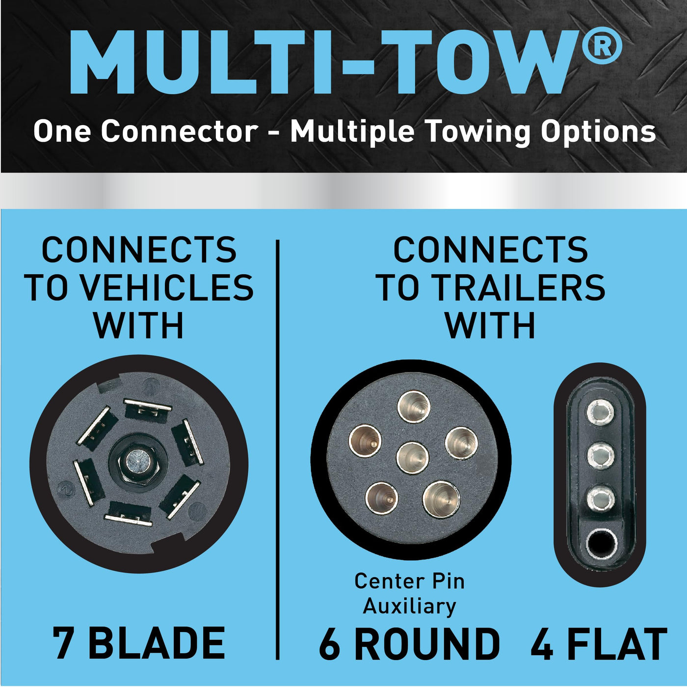 Q: How does the Multi-Tow feature enhance towing functionality?A: The Multi-Tow feature of the Hopkins 47565 Round Adapter provides two towing options from a single vehicle-end connector, allowing for a customized and versatile towing setup that can accommodate different trailer types.