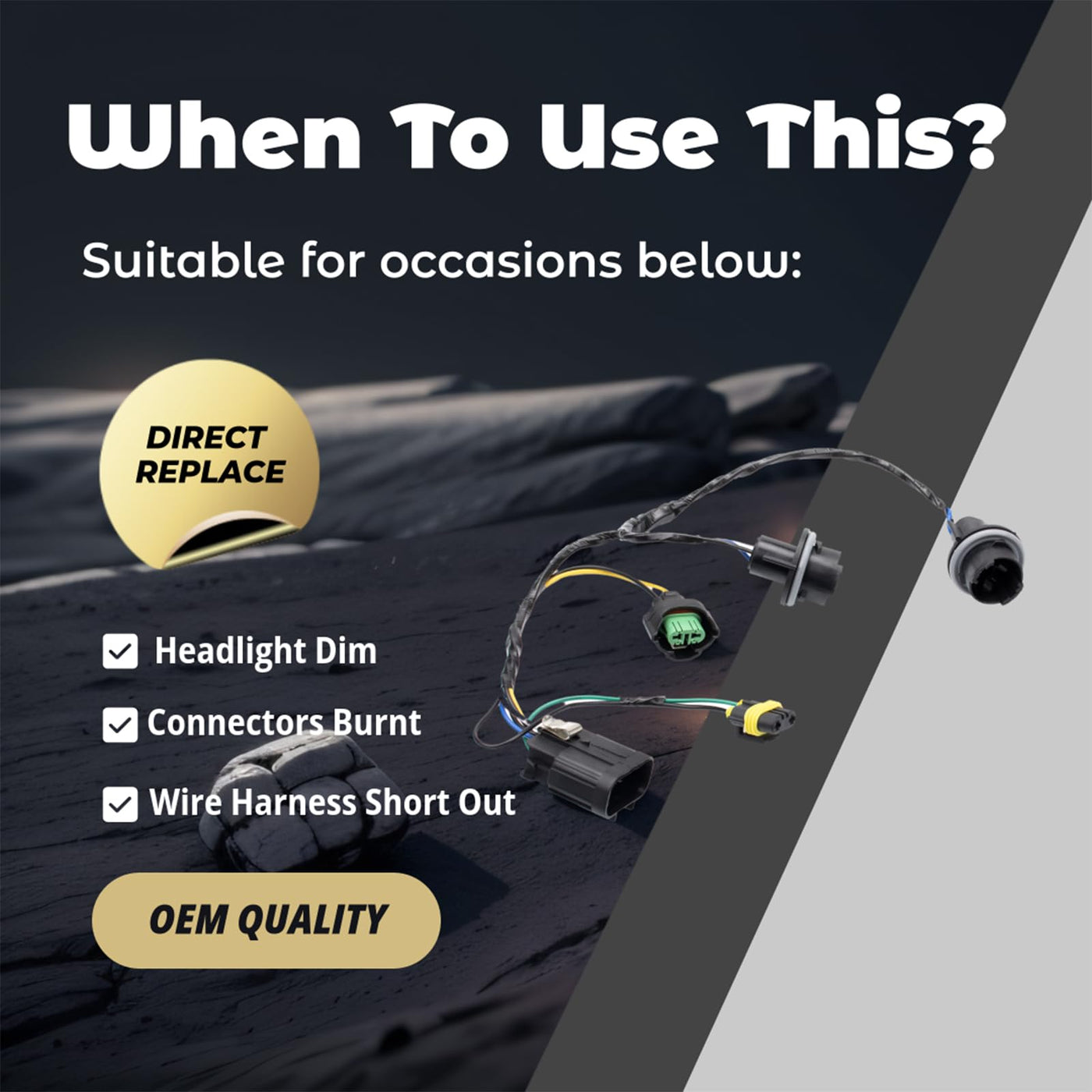 Q: What should I do if my headlights are not working?A: If your vehicle's front headlights are not functioning, consider replacing the wiring harness with the HOPUT Silverado Headlight Wiring Harness, as it is designed to resolve such issues effectively.