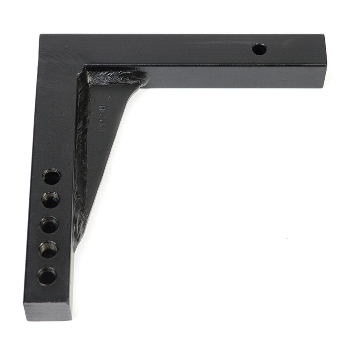 Q: What is the maximum drop and rise of the Husky Towing 32550 hitch shank?A: The Husky Towing 32550 hitch shank has a maximum rise of 11-1/4 inches and a drop of 13-1/4 inches, allowing for versatile adjustments to tow various trailers.