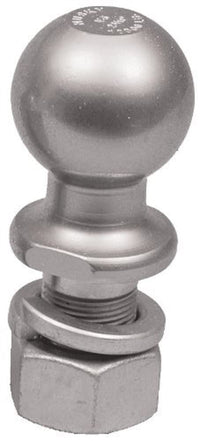 Manufactured from a single piece of solid steel with various shank lengths to accommodate a variety of ball platform thicknesses. Rated from Class I to Class IV with varying gross towing loads up to 17,000 pounds.‡ Includes lockwasher and nut. Follow these easy steps to properly determine the correct trailer ball for your application: A. Determine Ball and Coupler Size — Most couplers are stamped with the required trailer ball size. The sizes you'll most likely find stamped in the coupler are: Class I, 1-7/8 inch; Class II, 2 inch; Class III, 2-5/16 inch. B. Gross Trailer Weight (GTW) — Select the appropriate trailer ball to match or exceed the Gross Trailer Weight rating of the trailer. C. Match the trailer ball shank to the ball platform thickness and hole size — when mounted in the ball platform, the threaded ball shank must protrude beyond the bottom of the lock washer and nut at least two threads. D. Hole Size — the trailer ball shank must be matched to the platform hole diameter size. Standard hole sizes are: Class I: 3/4 inch diameter; Class II: 3/4 inch diameter; Class III/IV: 1 inch diameter; Weight Distribution: 1-1/4 inch diameter.