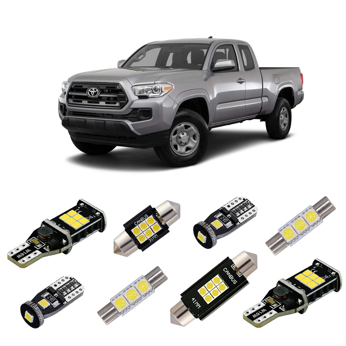 Ibrightstar Super Bright Led Bulbs Package Kit Accessories Fit For Toyota Tacoma 2005-2021 Interior Map Dome Lights + Vanity Mirror Lights + License Plate Lights + Back Up Reverse Lights, White
