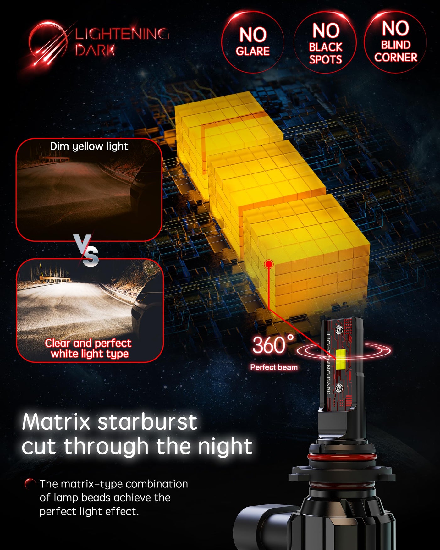 Lightening Dark 9005+H11 Light Bulbs, Hb3+H8/H9 Fog Bulbs Combo 6500K Xenon White Extremely Bright Wireless Fanless (Pack Of 4)