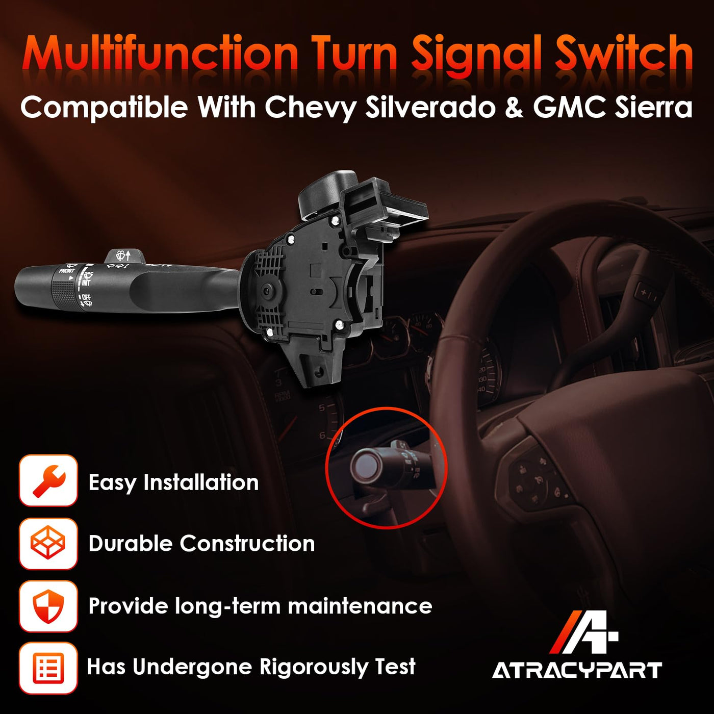 Multifunction Turn Signal Switch Headlight Dimmer Control | Replacement For 2014-2021 Chevy Silverado & Gmc Sierra 1500/2500/350