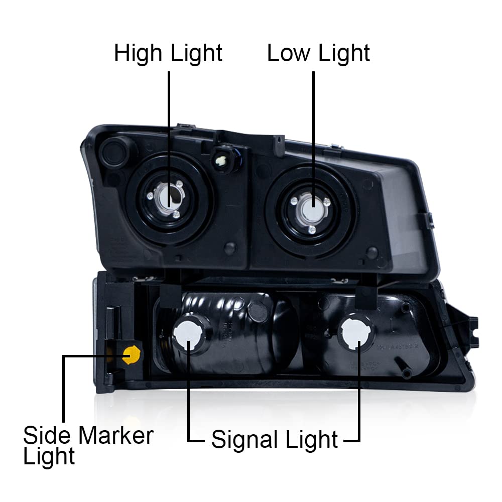 Pit66 Headlights, Compatible With 03-06 Chevy Silverado 1500 2500 3500 Hd Models/03-06 Avalanche 1500 2500(Fit No Cladding Only) Smoky Lens Chrome Housing Amber Corner