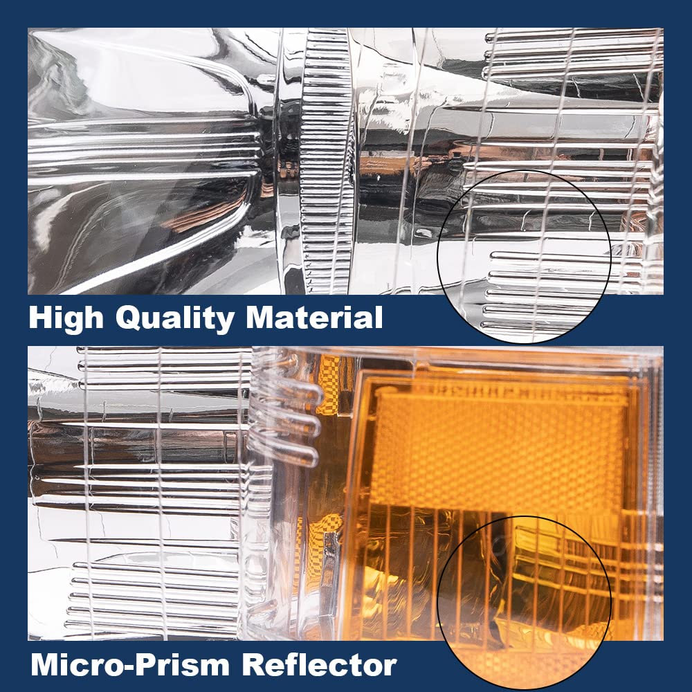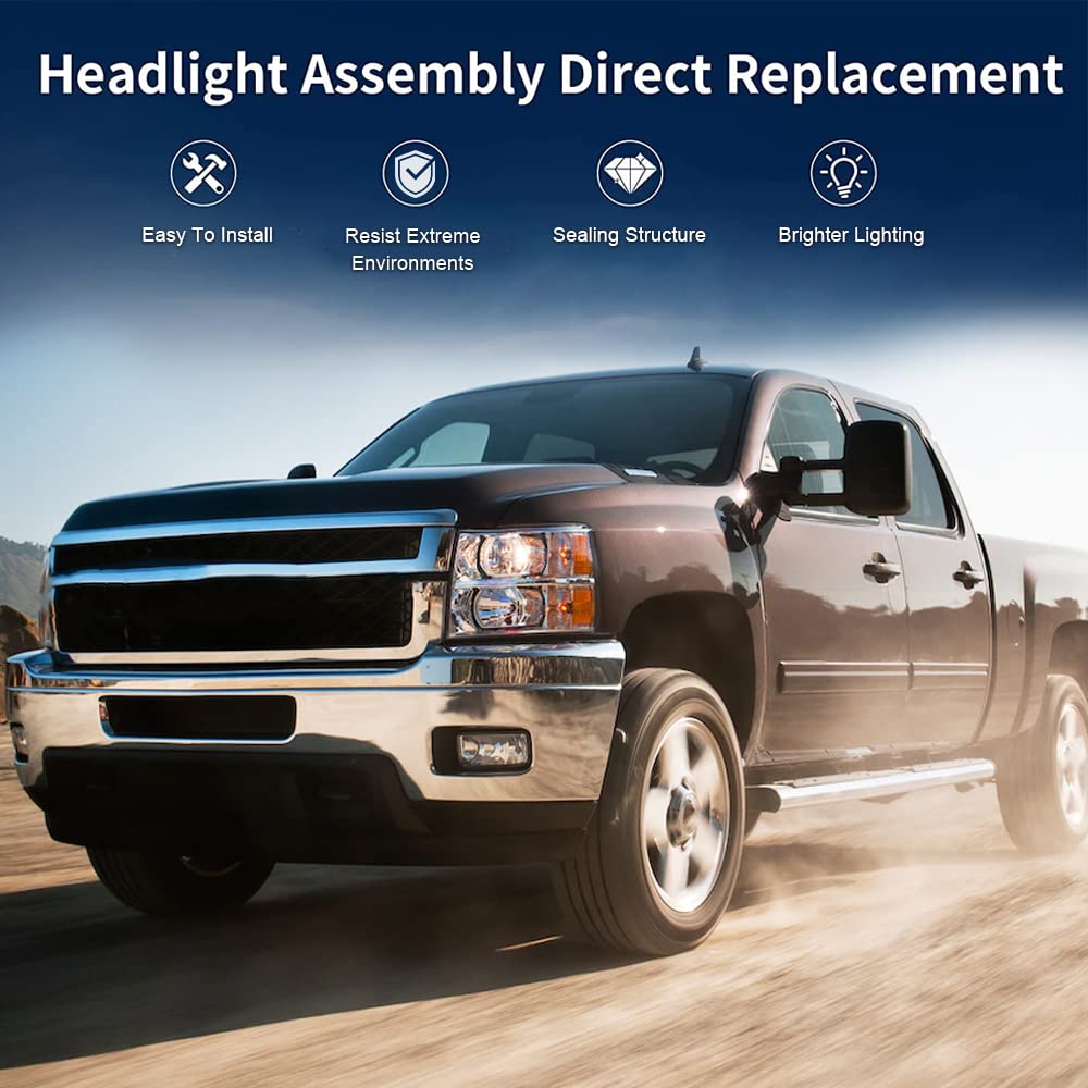 Pit66 Headlights, Compatible With 07-13 Chevy Silverado 1500/07-14 Silverado 2500 3500 & Hd Clear Lens Chrome Housing Amber Reflector