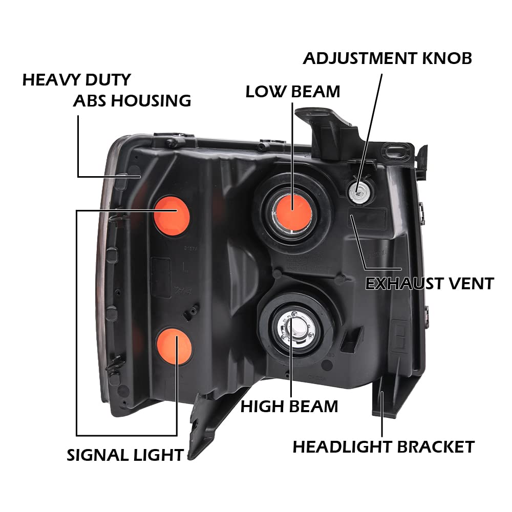 Application: Compatible with Chevy Silverado 1500 Models 2007-2013 Compatible with Chevy Silverado 2500 3500 & HD Models 2007-2014 NOT COMPATIBLE WITH 07 CLASSIC MODELFeatures: 100% Brand New & High Quality Material:ABS Plastic / Polycarbonate Lens Housing Color:Chrome Headlight Style:Factory Comes in a Pair, Which Means Included Left Side (Driver Side) & Right Side (Passenger Side) Direct Bolt On Compatible with Your Headlights, No Wiring or Any Other Modification Needed DOT (Department of Transportation) & SAE (Society of Automotive Engineers) Approved Unless Otherwise Noted, Our Lights Do Not Include Bulbs, Though Occasionally Lighting Manufacturers Do Include Bulbs in the Lights. Interchange Part Number: 25962804, 25962805, 22853028, 22853027 Other Part Number:GM2502280_07 08 09 10 11 12 13Package including: 1 Pair of Headlights