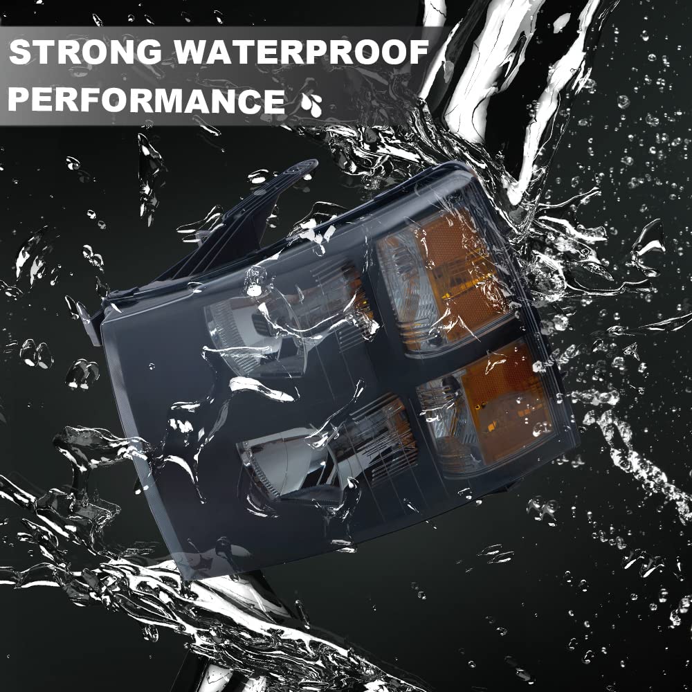 Pit66 Headlights, Compatible With 07-13 Chevy Silverado 1500 /Silverado 2500 3500 & Hd 07-14 Smoky Lens Black Housing Amber Reflector