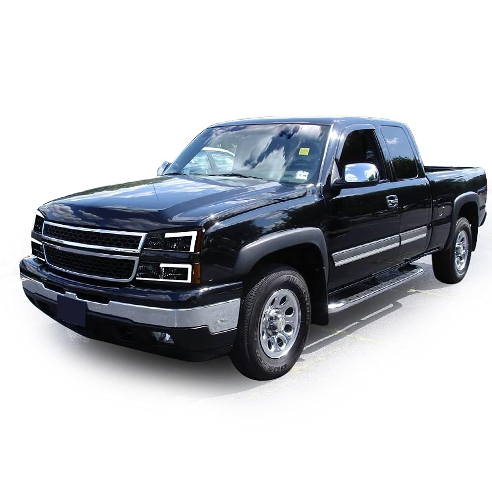 Pit66 Led Headlight, Compatible With 03-06 Chevy Silverado 1500 2500 3500 Hd Model/03-06 Avalanche 1500 2500(Fit No Cladding Only) Smoky Lens Chrome Housing Amber Corner
