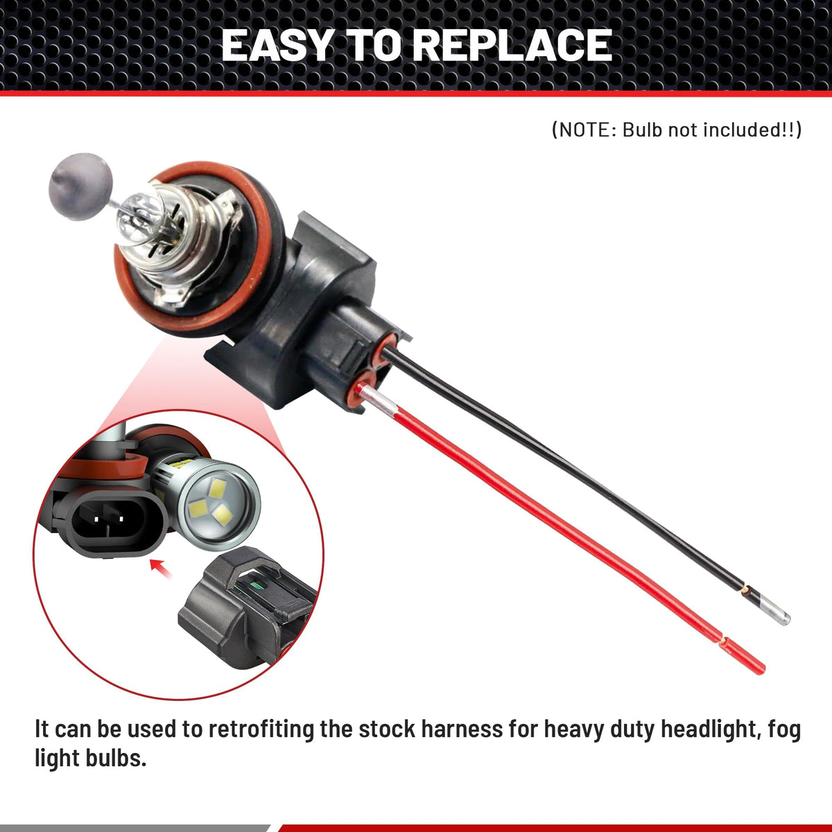 SpecificationMaterial: ABS + Copper Wire;Suitable for H11 H8 H9 bulb size, also suitable for some 880/881/890 bulbUses Oxygen-Free Copper, Low Resistance, Good ElectricalPerfect for headlights or fog light repair, retrofit, extension useCompatible Bulbs: H8/H9/H11/880/881/H27;Installation: Plug and Play;Package include: 1 pair pre-wired H11/H8 lamp connectors/adapters