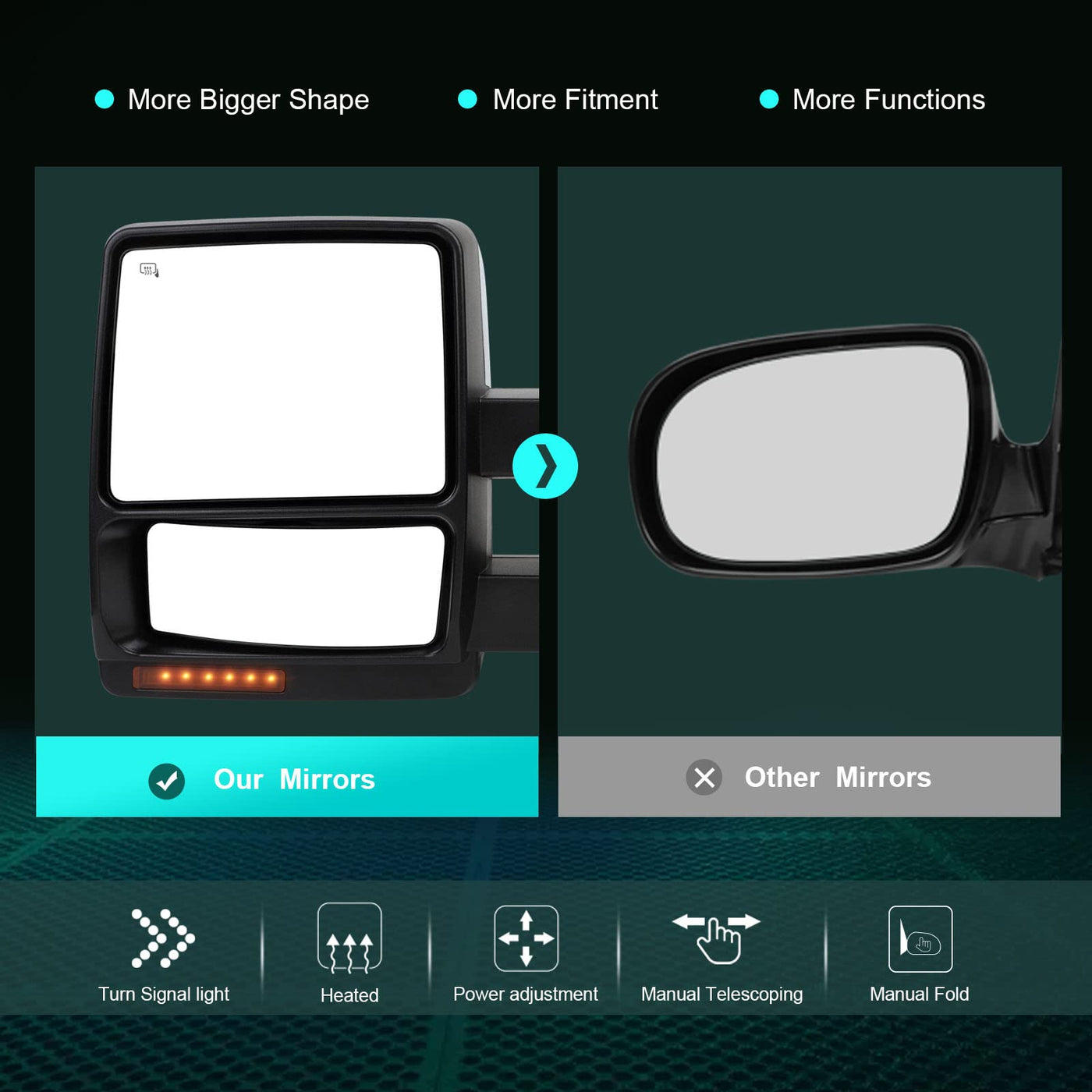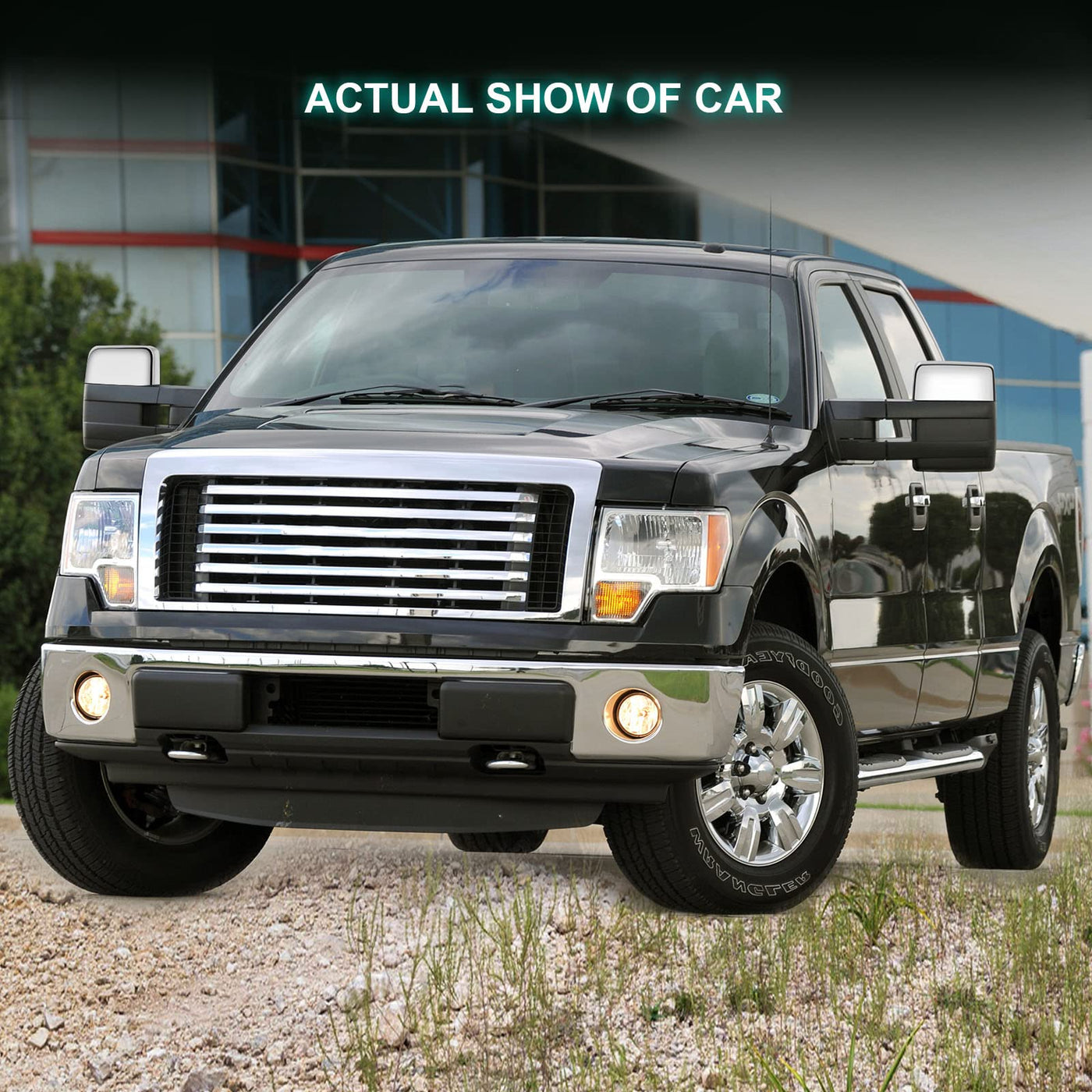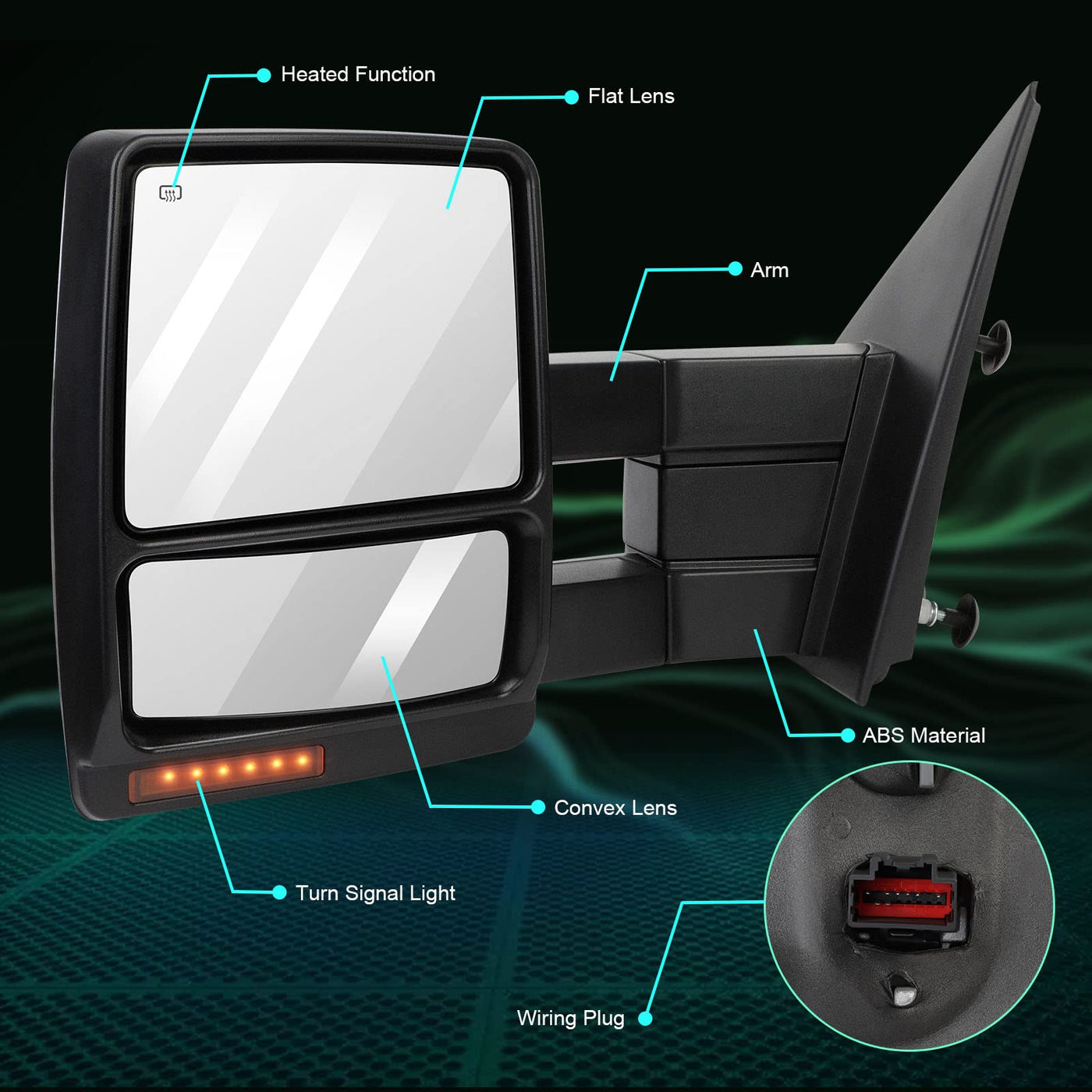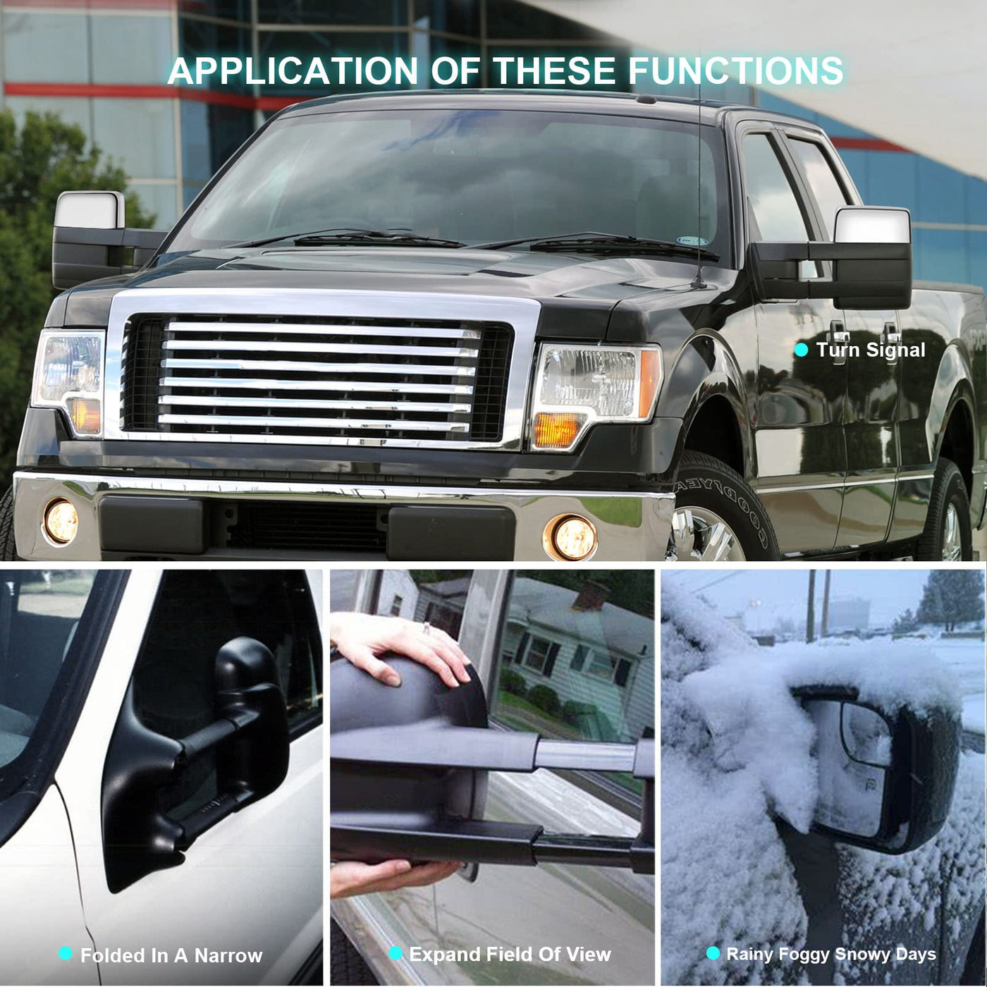 SCITOO Towing Mirrors fit 2007-2014 For Ford For F150 with Power Heated Amber Turn Signal Manual Telescoping and Folding (Chrome)