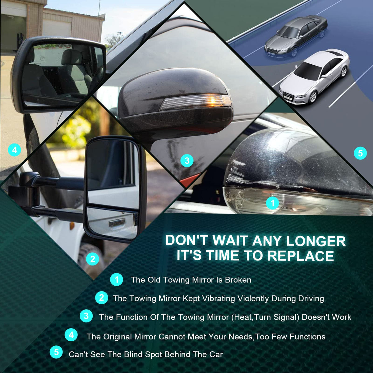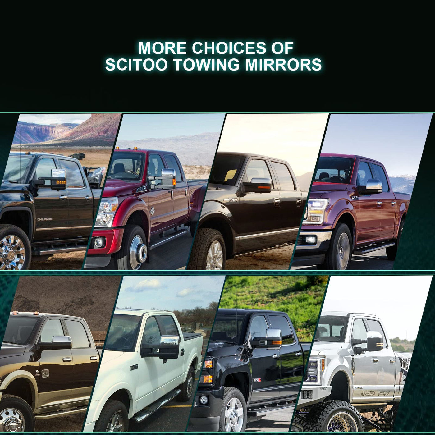 Q: How do I install the SCITOO Towing Mirrors?A: Installation is straightforward as these mirrors are designed to fit the same footprint and mounting points as the factory mirrors. Follow the included instructions for a hassle-free setup.
