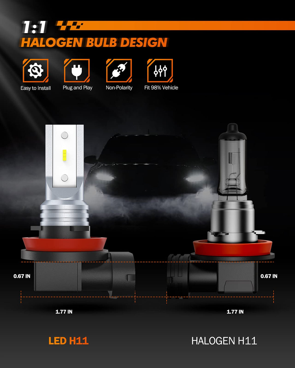 Q: What is the installation process for SEALIGHT H11 LED fog light bulbs?A: Installation is straightforward and can be completed in approximately 5 minutes. The 1:1 full size heat dissipation base closely mimics the halogen lamp design, making it easy to fit without any special tools or extensive modifications.