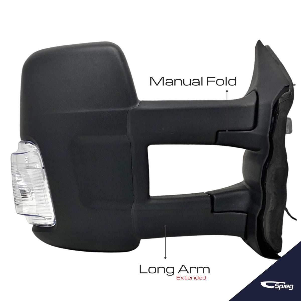 Long Arm Passenger Side Mirror Replacement Specifications Position : Passenger Right Mirror Glass Operation : Power Signal Lamp / Blinker / Indicator / Led : Yes Puddle / Foot Lamp : No Folding Power / Manual : Manual Heated Mirror Glass : Yes Blind Spot Monitoring / Detection / Bsm : No Camera 360 View : No Electrochrome / Auto Dimming : No Memory : No Temperature Sensor : No Plug Type : 8 Pin Plug - 6 Wires Cover : Textured Black Fitment 2015 - 2022 Transit 150 , 250 , 350 , 350Hd Note Please Check The Fitment Before You Place The Order. If You Can'T Confirm Compatibility, Do Not Hesitate To Post A Question. Unless Otherwise Is Stated, Features Must Be Exactly Same With Factory-Built Part In Order Replacement Part To Fit And Function.