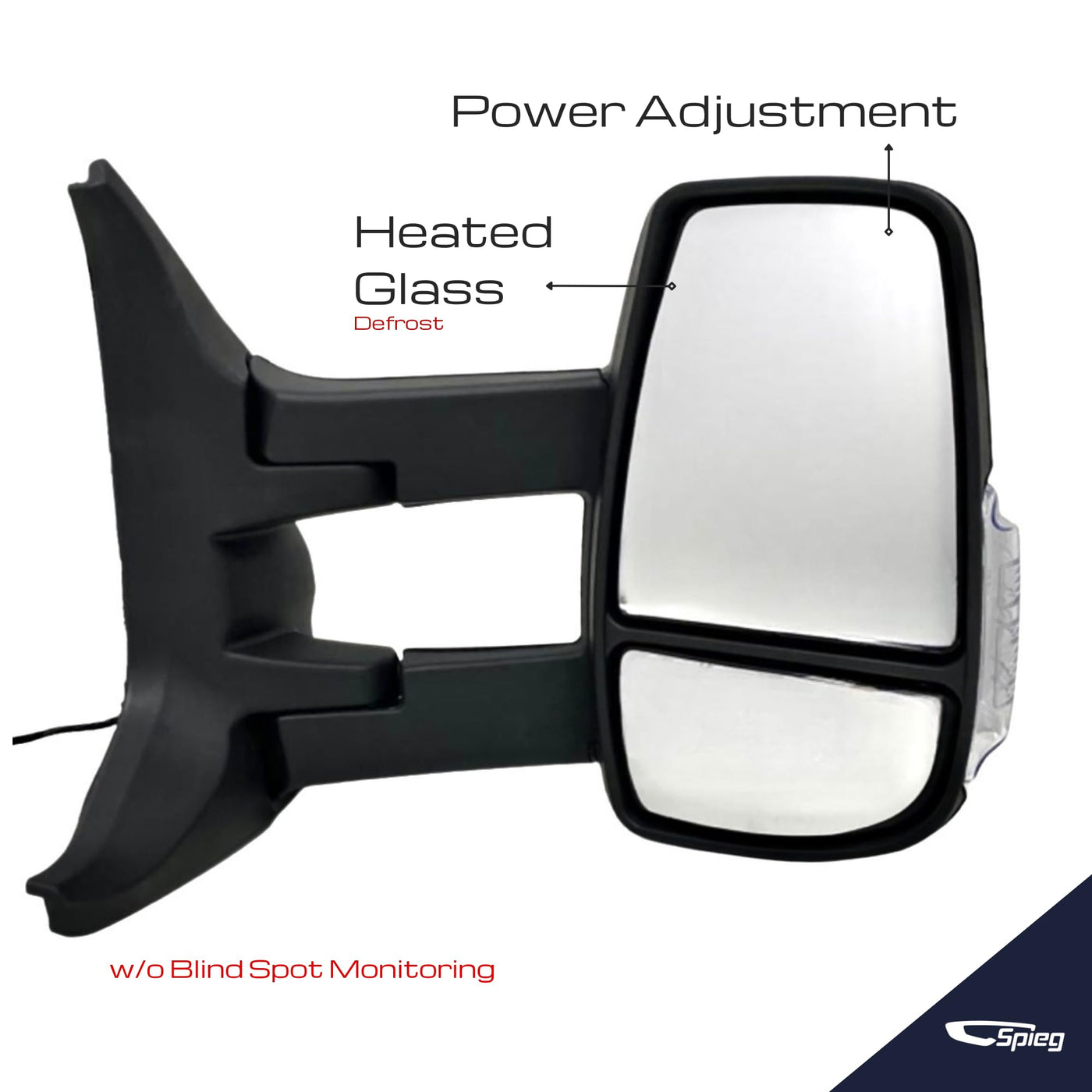 Spieg Passenger Side Towing Mirror Replacement For Ford Transit Cargo Van 2015-2022 Power Adjusted Heated Turn Signal 8Pin Conne