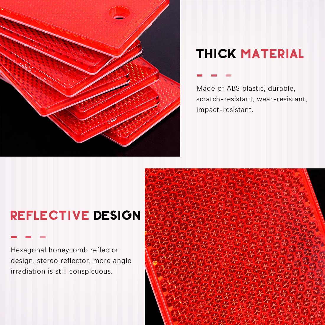 Swpeet 20Pcs Universal Red Plastic Rectangular Stick-On Car Reflector Sticker Why Choose Us 1, Keep Safe, Makes Your Trailer Much More Visible Can Be Used On Anything You Want To See Better At Night Such As A Mailbox 2, Easy To Install With Adhesive Back And Two Mounting Holes Made Of Good Abs Plastics And Durable 3, High-Strength Paste, Durable, Anti-Uv, High Temperature, Not Afraid Of Rain, Make The Appearance More Beautiful Specifications: Product Name: Car Reflector Color: Red Material: Plastic Package Content: 20Pcs X Car Reflector Dimension: 1478 X 48 X 6Mm 582 X 19 X 024 Inches (L*W*T) Package Included: 20Pcs -------------- Red Car Reflector Warm Note: Due To Lighting Effects, Monitors Brightness Contrast Settings Etc, There Could Be Some Slight Differences In The Color Tone Of The Pictures And The Actual Item Add To Your Cart Now This Product Is Sold With A Full 30-Day Money-Back Guarantee If Youre Dissatisfied With Your Purchase For Any Reason, Contact Us For A Replacement Or Refund Go Ahead To Add The Item To Your Shopping Cart And Check Out, You Will Not Be Disappointed Tips: Clean The Surface Of Your Car Before Sticking The Reflector And Then Press It For A Firm Adhesion