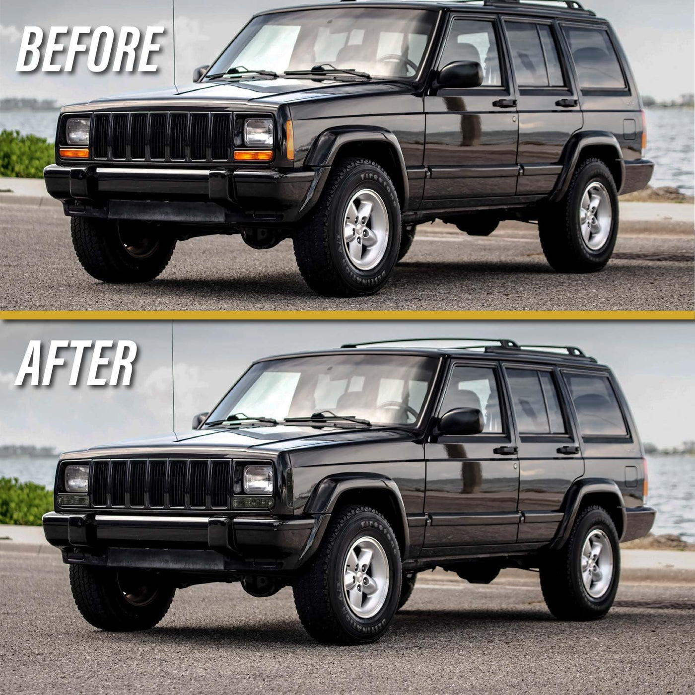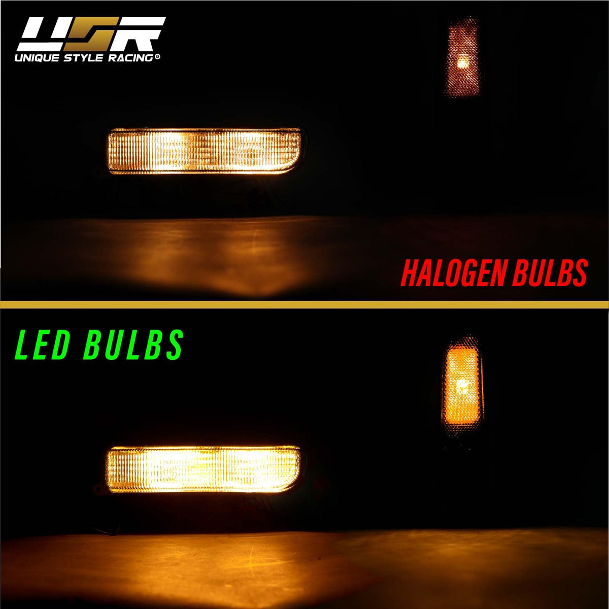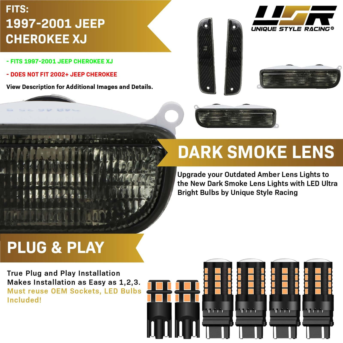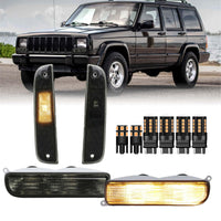 Usr 97-01 Xj Cherokee Smoke Lens Corner Side Marker Light & Front Bumper Turn Signal Light - With X6 Led Amber Bulbs Upgrade - 4