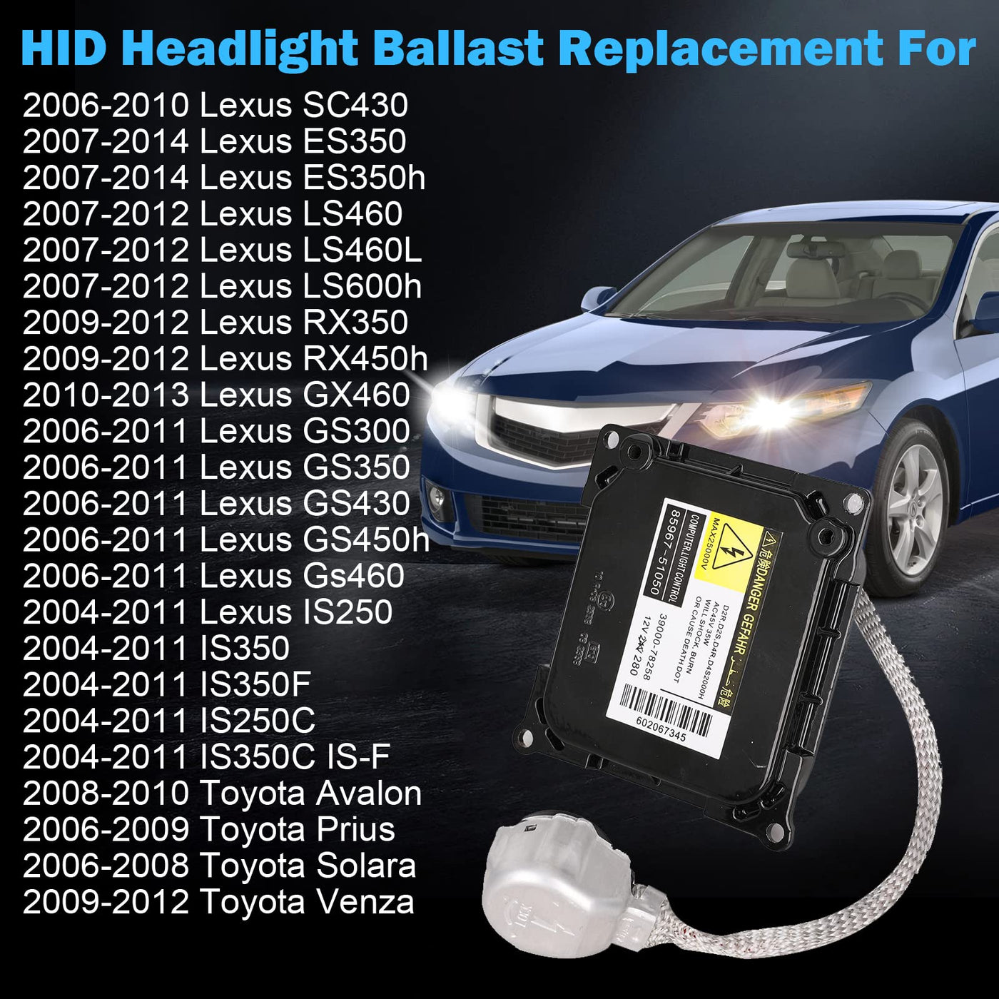 Xenon HID Headlight Ballast Control Unit Compatible with Lexus IS250 IS350 GS300 GS350 ES350 SC430 RX350 Toyota Prius Avalon Solara Venza Replaces KDLT003 DDLT003 85967-53040 85967-24010 85967-52020