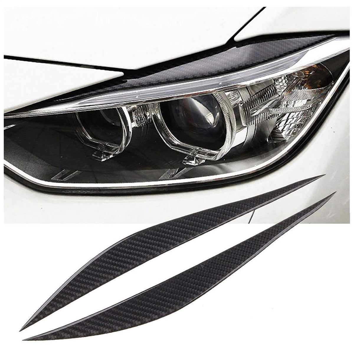 This listing features two pieces carbon fiber front headlight eyebrow cover decor sticker compatible with 3 Series F30 2013-2018 DescriptionExquisite carbon fiber Surface must be clean and dry prior to adhering Super light-weight and beautiful sporty shape Glossy epoxy UV-resistant coating for preventing color fade Surface must be clean and dry prior to adhering It is durable and long lasting under any weather condition Simply peel off one end of the tape, attach and press it firmly Fitment Compatible with F30 2012-2018 Sedan and Wagon models equipped with Xenon headlight package Note Make sure the target location is clean enough. You'd better scrub the surface with alcohol or special cleaning agent for several times. Use heat gun or dryer to heat it and apply on to your car. Stay dry in 48 hours for the best firming result Professional installation is highly recommended It is for decorative purposes only, all manufacture names, symbols, and descriptions are solely used for identification purposes only