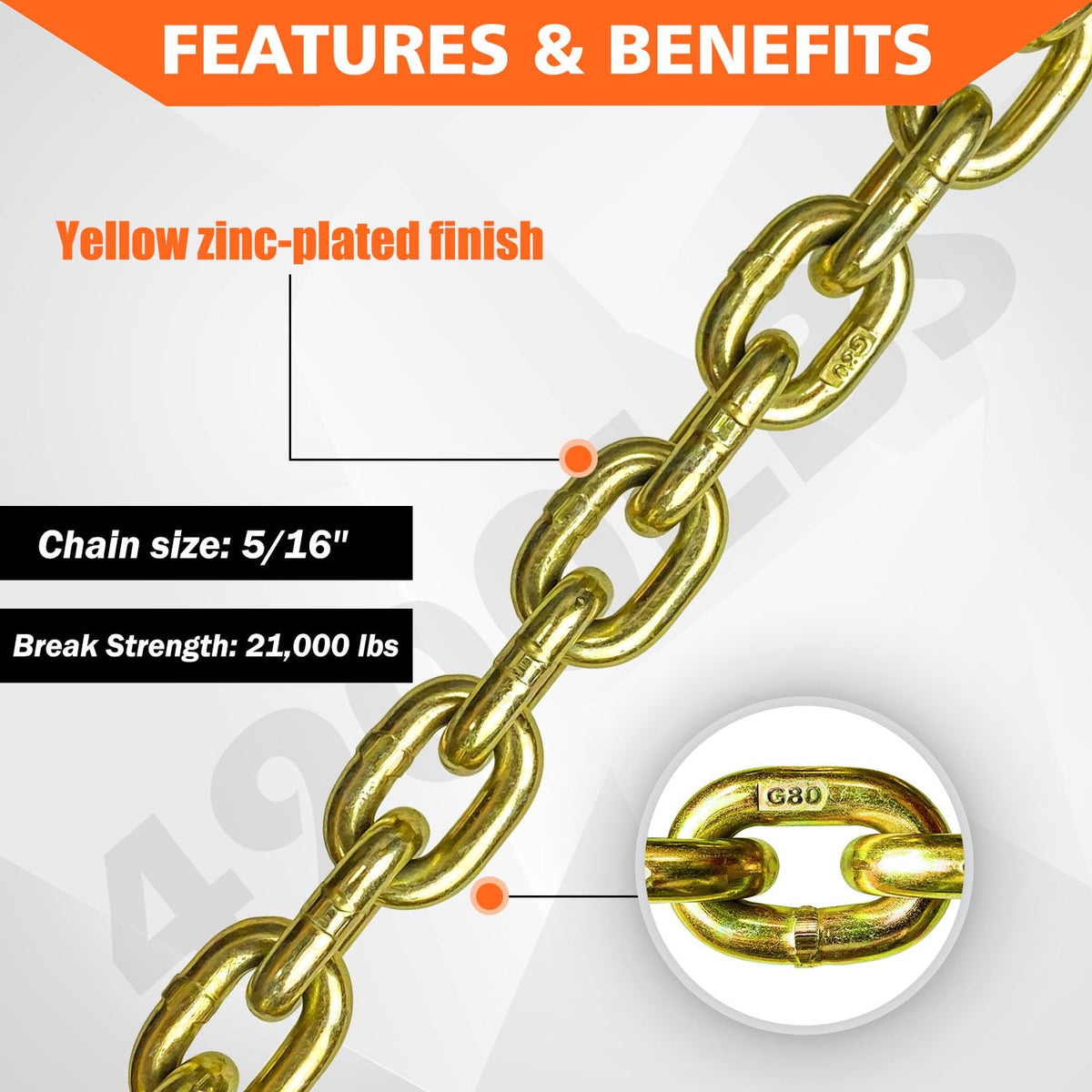 Q: Is the YATOINTO safety chain compliant with regulations?A: Yes, all YATOINTO grade 80 chains and clevis snap hooks are embossed with proper markings to meet NACM standards, ensuring compliance during roadside inspections.